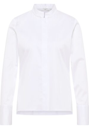 Dieses unifarbene SATIN SHIRT von ETERNA ist geschmeidig und fein schimmernd, es ist ein elegantes Must-have für feminine Businesslooks und stilvolle Momente. Der dezente Glanz des bügelleichten Satingewebes (95% Baumwolle, 5% Elasthan) wirkt edel und macht diese Bluse (Rückenlänge 63 cm) zu etwas ganz Besonderem. Der Stehkragen und die verdeckte Knopfleiste runden den Look dieser Fitted Bluse geschmackvoll ab. Durch die Paspelierungen wird die Kontur des Stehkragens und der Manschetten besonders betont. Die Bluse zaubert eine super-schlanke Silhouette, die durch Abnäher im Rückenteil erreicht wird und die Ihre Figur deutlich akzentuieren. Dank des Stretch-Anteils garantiert dieses Modell jedoch optimale Bewegungsfreiheit. Bestellen Sie dieses einmalige SATIN SHIRT noch heute bequem in unserem Online-Shop!