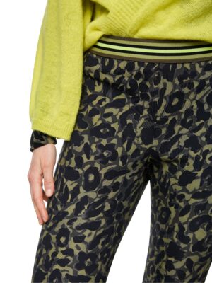 Modell FREDERICA ist eine Schlupfhose mit Gummibund und femininer Passform. Das Bein hat einen Bootcut und eine verkürzte Länge bis zum Knöchel. Das superstretchige Material vermittelt Passform und Tragekomfort. Cool, der Leo-Druck mit Tupfen in Blumenform. Komische Form. Ohne Taschen. Flexibler Bund. FREDERICA – FEMININE FIT – REGULAR – Beinlänge: 28″. Das Model ist 179 cm groß und trägt N3/38.