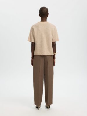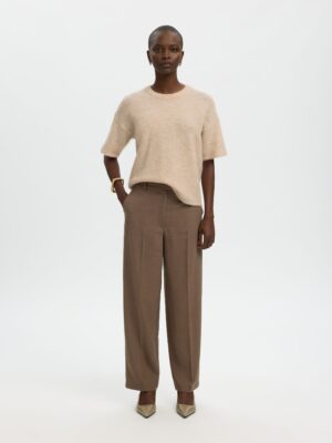 Die Selected Femme Kollektion bietet zeitlose Designs und hochwertige Materialien. Das gestrickte T-Shirt mit gerippten Ärmelbündchen ist ideal für moderne Frauen, die Eleganz und Komfort schätzen. Die normale Passform vereint aktuelle Trends mit klassischem Stil.