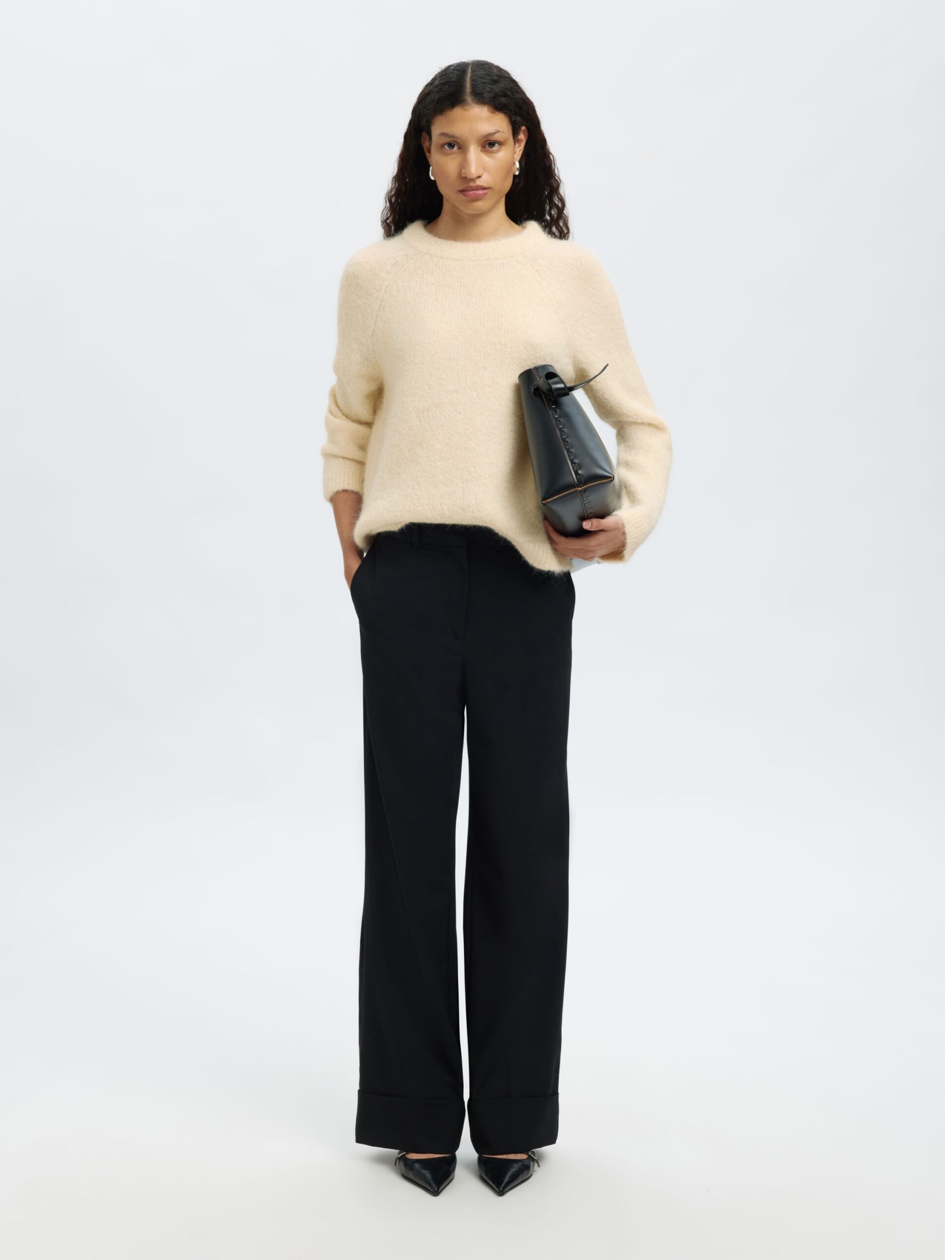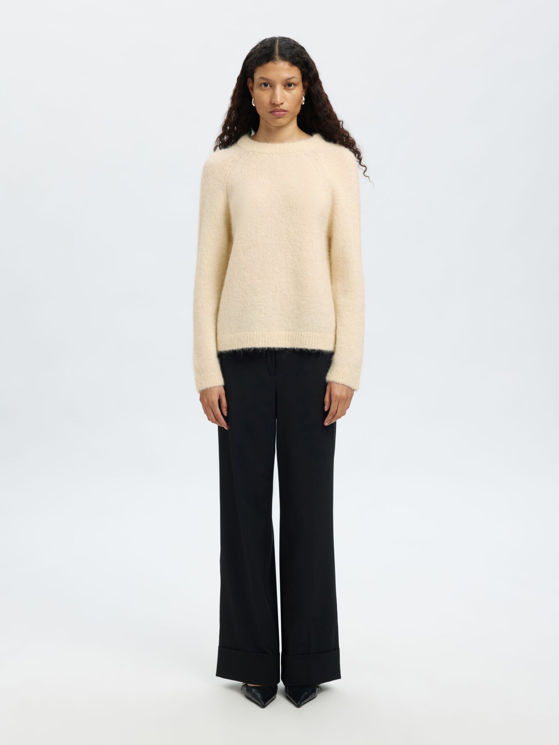 Dieser schlichte Strickpullover aus einem Alpaka-Woll-Gemisch besticht durch seine Schleife am Rücken. Kombiniere ihn mit einem Satinrock und Lederstiefeln für einen eleganten Look. Der Pullover verfügt über einen Rundhalsausschnitt, einen Bindeverschluss am Rücken, lange Raglanärmel, gerippte Säume und einen entspannten Sitz. ZERTIFIZIERTES ALPAKA.