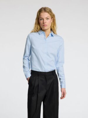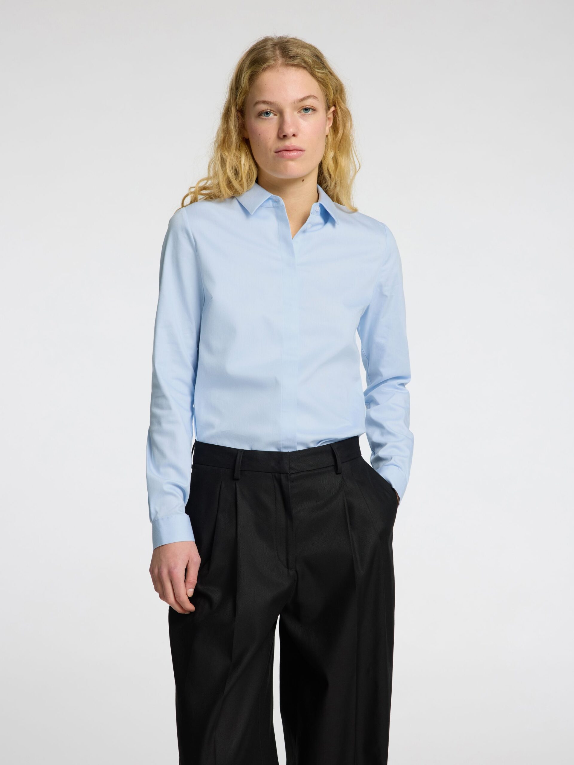 Diese körperbetonte Bluse ist ein echtes Must-have für jeden Tag. Sie enthält Bio-Baumwolle und hat einen Slim Fit, damit du sie problemlos unter Strick oder einen Blazer ziehen kannst. Fürs Büro würden wir sie mit einer Stoffhose mit weitem Bein und spitzen Ballerinas stylen. – Hemdkragen – Verdeckte Knopfleiste – Lange Ärmel mit geknöpften Manschetten – Gerundeter Saum – Slim Fit ENTHÄLT BIO-BAUMWOLLE Das Hauptmaterial dieses Produkts besteht zu mindestens 50% aus Bio-Baumwolle. Bio-Baumwolle wird ohne schädliche Chemikalien angebaut. Der Anbau von Bio-Baumwolle schont die natürlichen Ressourcen und schützt die Artenvielfalt.