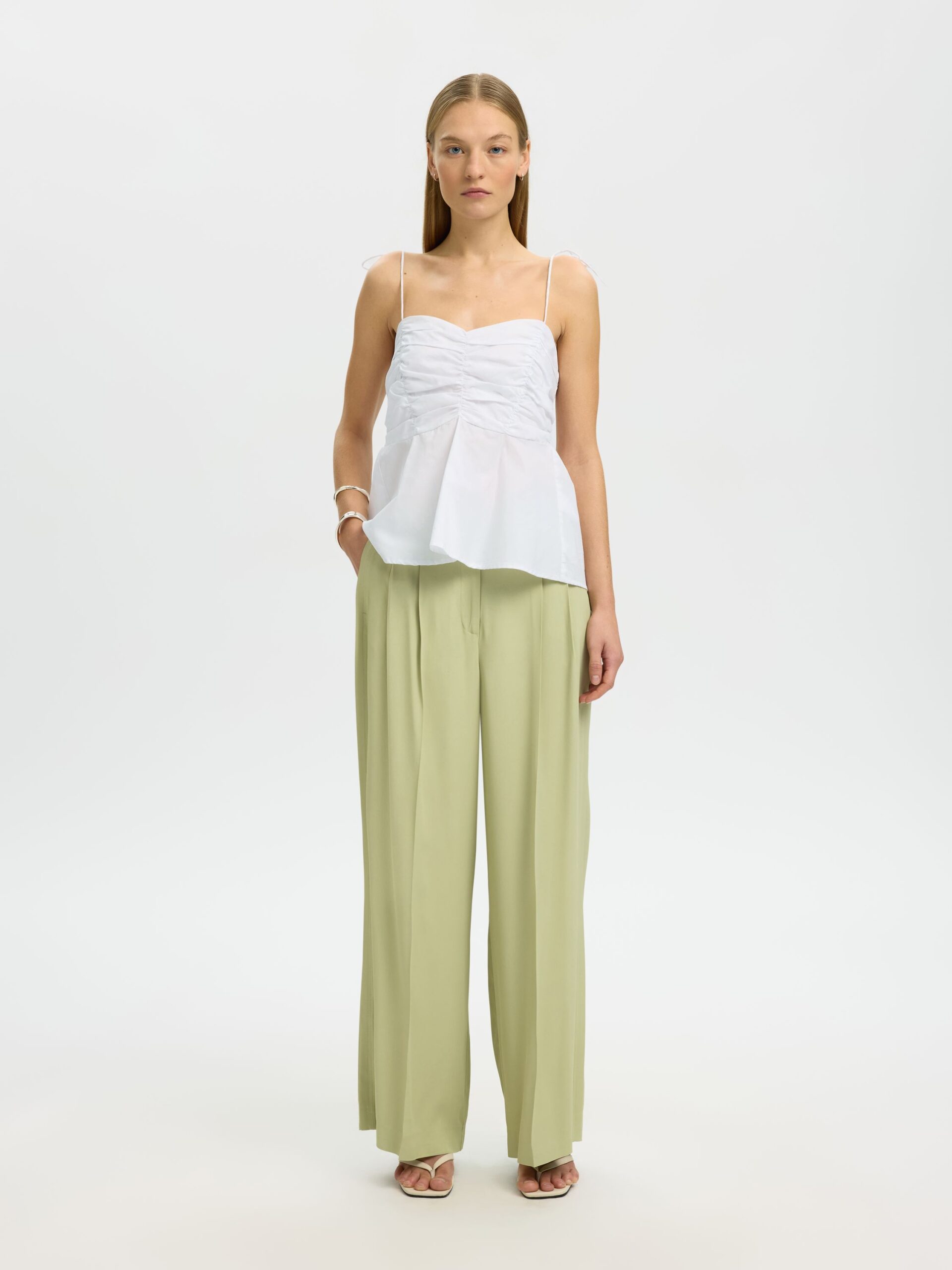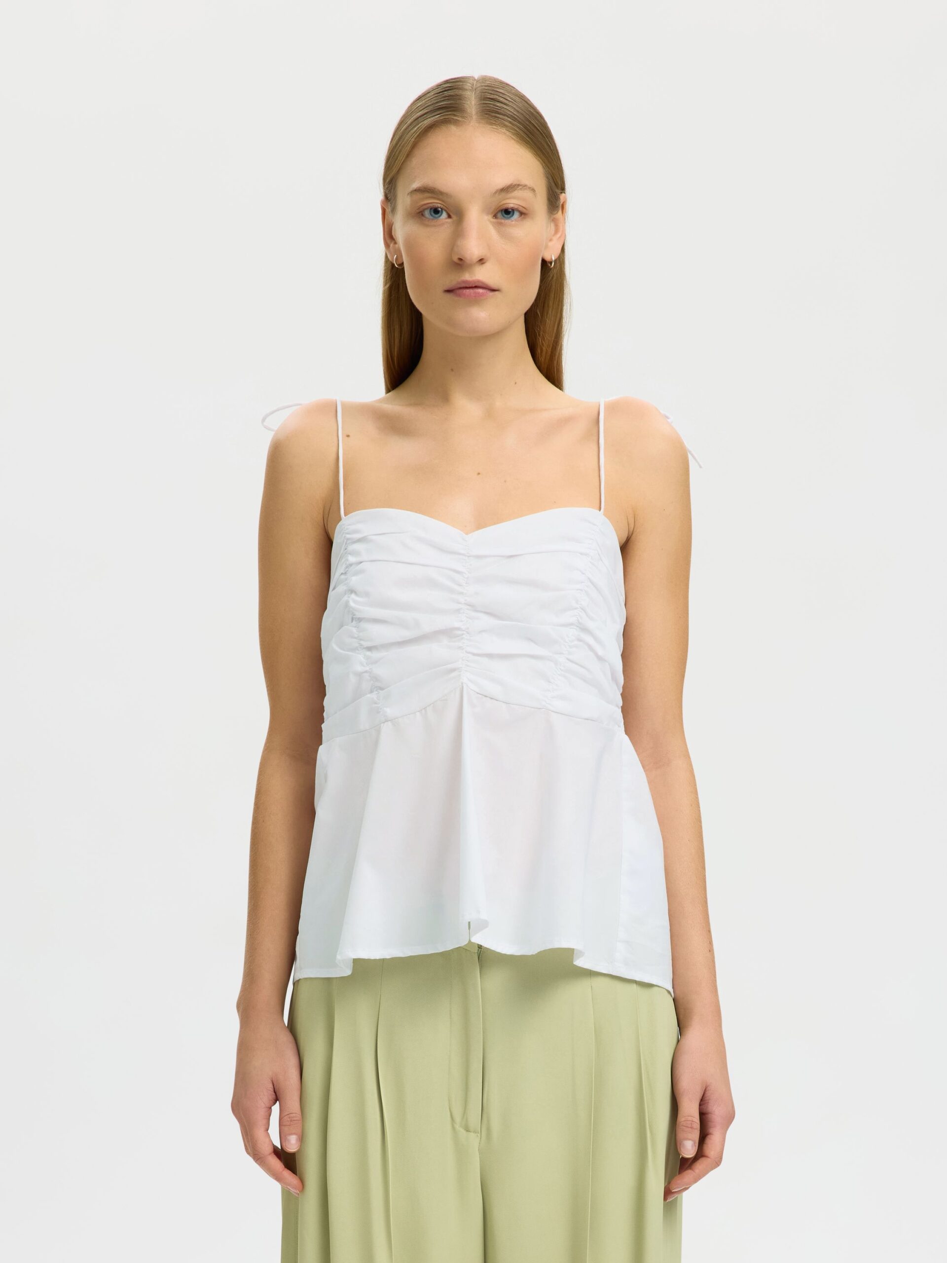 Das SLFDELIA STRAP TOP B von Selected Femme ist ein elegantes Tüll-Top mit verstellbaren Trägern und einem gerafften Detail. Es betont die Taille und ist normal geschnitten. Die Selected Femme Kollektion bietet stilvolle und moderne Damenmode, die Eleganz und Komfort vereint. Jedes Stück ist sorgfältig entworfen, um sowohl im Alltag als auch zu besonderen Anlässen getragen werden zu können. Die Designs zeichnen sich durch klare Linien und hochwertige Materialien aus, die eine feminine Silhouette betonen.