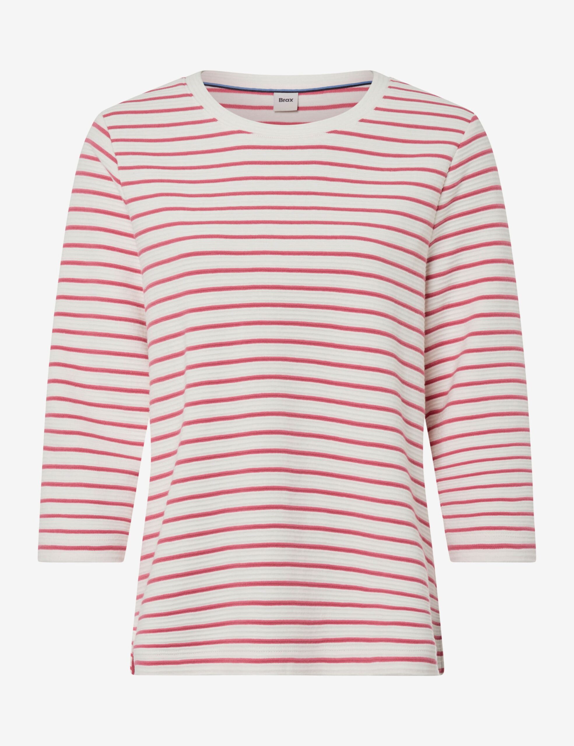 Das Shirt im STYLE BONNIE ist der perfekte Begleiter für die gemütlichen und stimmungsvollen Tage des Herbstes. Mit seiner lässigen Oversized-Silhouette, 3/4-Ärmeln und dem klassischen Rundhalsausschnitt strahlt es eine entspannte Eleganz aus, die sich vielseitig kombinieren lässt. Die feinen Querstreifen verleihen dem Design eine moderne Dynamik, während kleine Saumschlitze als dezente Details für eine charmante Auflockerung sorgen. Gefertigt aus hochwertiger, reiner Baumwolle, bietet dieses Shirt für Damen nicht nur ein angenehmes Tragegefühl, sondern auch eine natürliche Atmungsaktivität, die für höchsten Komfort sorgt. Die Struktur des Materials sorgt für einen angenehmen Griff und unterstreicht die hochwertige Verarbeitung. Dieses Shirt verbindet Stil und Wohlbefinden auf harmonische Weise und wird schnell zu einem unverzichtbaren Lieblingsstück in Ihrer Garderobe.