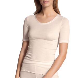 Das Basic-Kurzarm-Shirt der Serie TRUE CONFIDENCE von CALIDA ist weich und schmeichelt auch empfindlichster Haut. Wolle nimmt Feuchtigkeit gut auf, ohne sich feucht anzufühlen, und sorgt so für ein wohlig warmes und trockenes Gefühl. Antibakterielle Wirkung verhindert unerwünschten Körpergeruch.