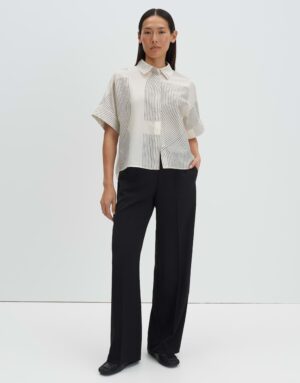 Die Bluse Zulin von SOMEDAY besticht durch ihre weite Passform und den geraden Schnitt. Mit verkürzter Länge und überschnittenen Kurzarmen ist sie ein modischer Begleiter. Der Hemdblusenkragen und das grafische Muster verleihen der Bluse das gewisse Etwas.
