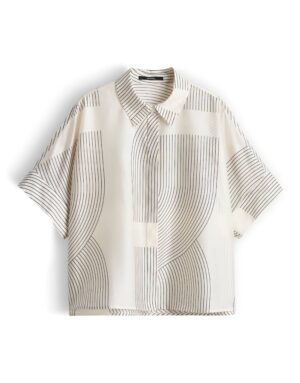 Die Bluse Zulin von SOMEDAY besticht durch ihre weite Passform und den geraden Schnitt. Mit verkürzter Länge und überschnittenen Kurzarmen ist sie ein modischer Begleiter. Der Hemdblusenkragen und das grafische Muster verleihen der Bluse das gewisse Etwas.