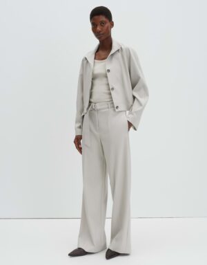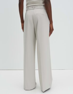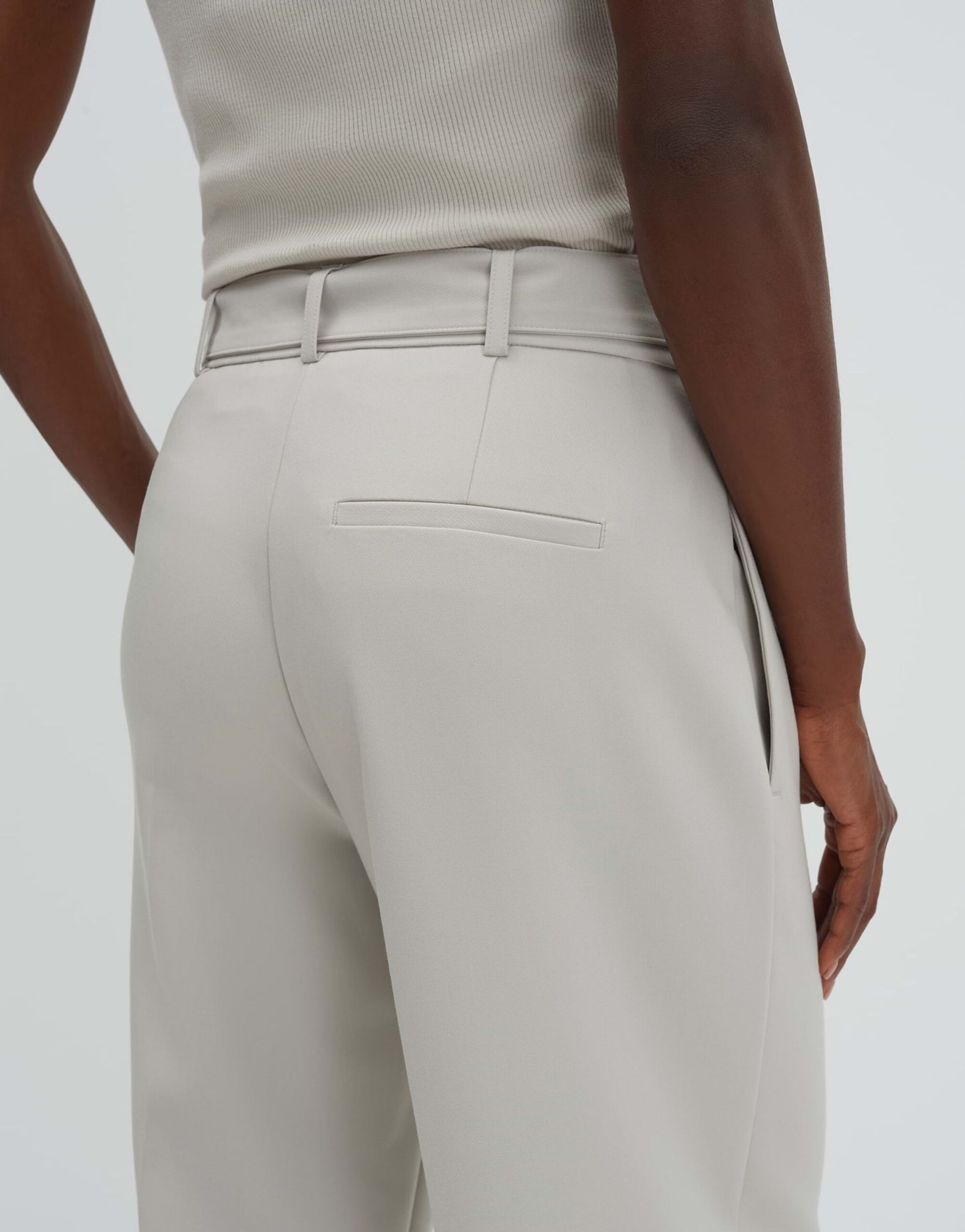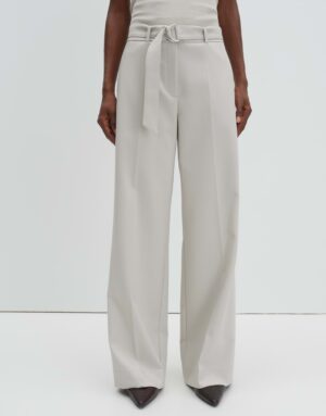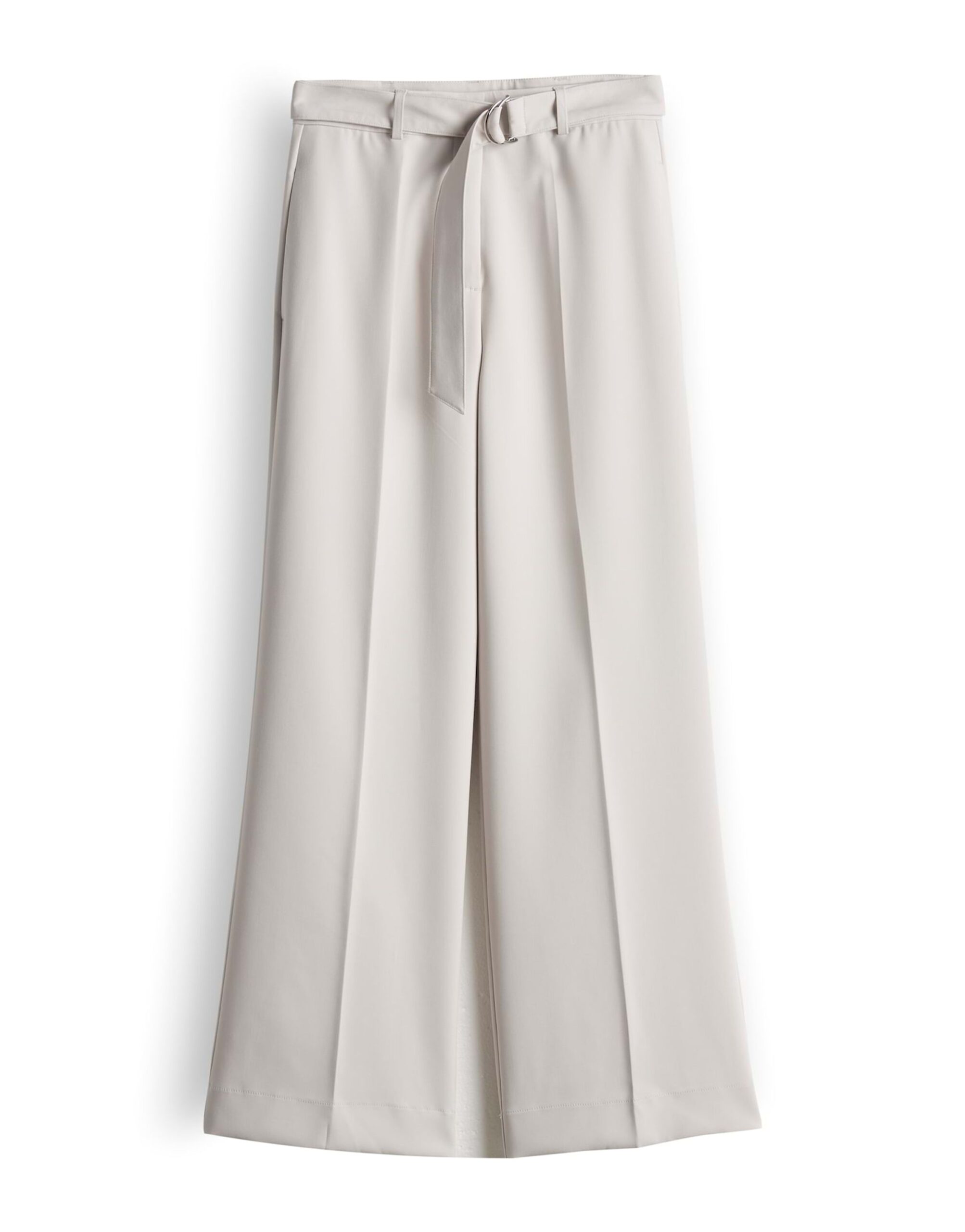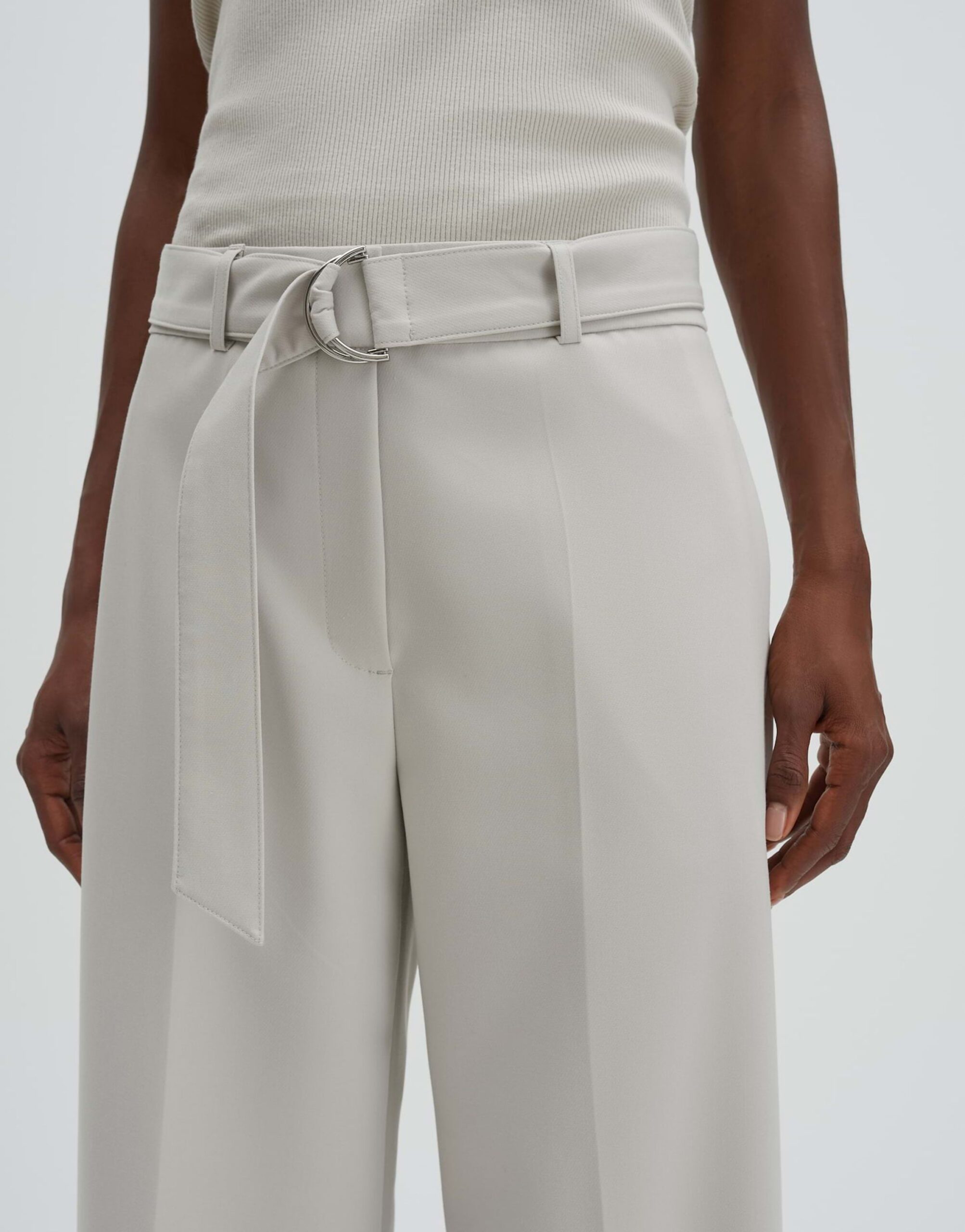 Die Hose mit geradem Beinverlauf und Bügelfalten hat eine Hosenbein Innenlänge von ca. 81 cm in jeder Größe. Sie besteht aus Webware mit glattem Griff und fließendem Fall. Mit Nahttaschen, Zier-Paspeltasche hinten, verdecktem Zip-Fly und einem Gürtel mit D-Ring Verschluss.