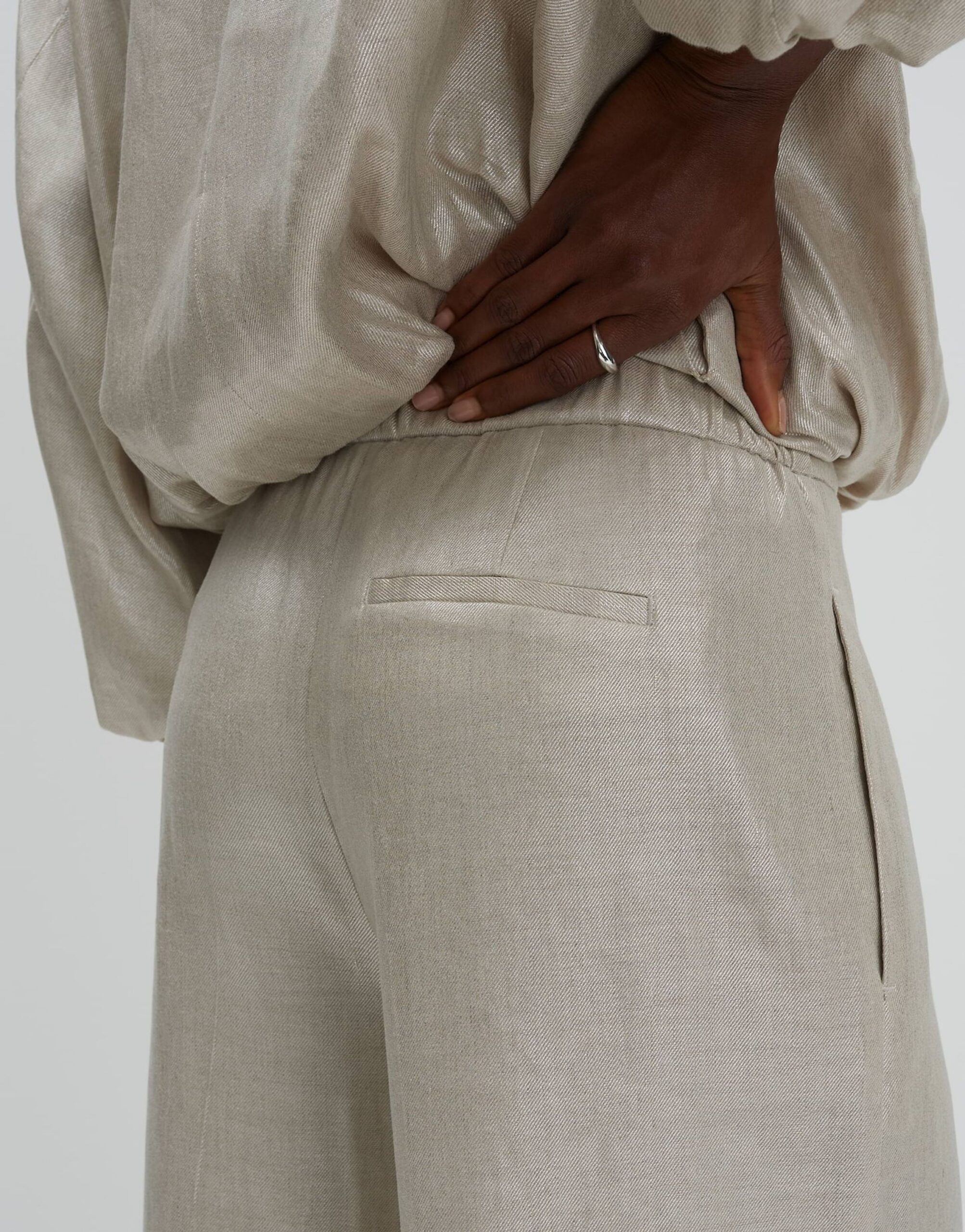Die Catsby cropped wide Hose von SOMEDAY überzeugt mit einem weiteren, geraden Beinverlauf und einem elastischen Gummibund. Die Hosenbein Innenlänge beträgt ca. 62 cm in jeder Größe. Die Webware mit dezenter Twillstruktur und fester Griff sorgt für eine formstabile Passform. Mit schimmernder Oberfläche, Coating, Nahttaschen in der Seitennaht, Zier-Paspeltasche hinten und Bügelfalten.
