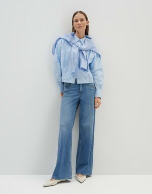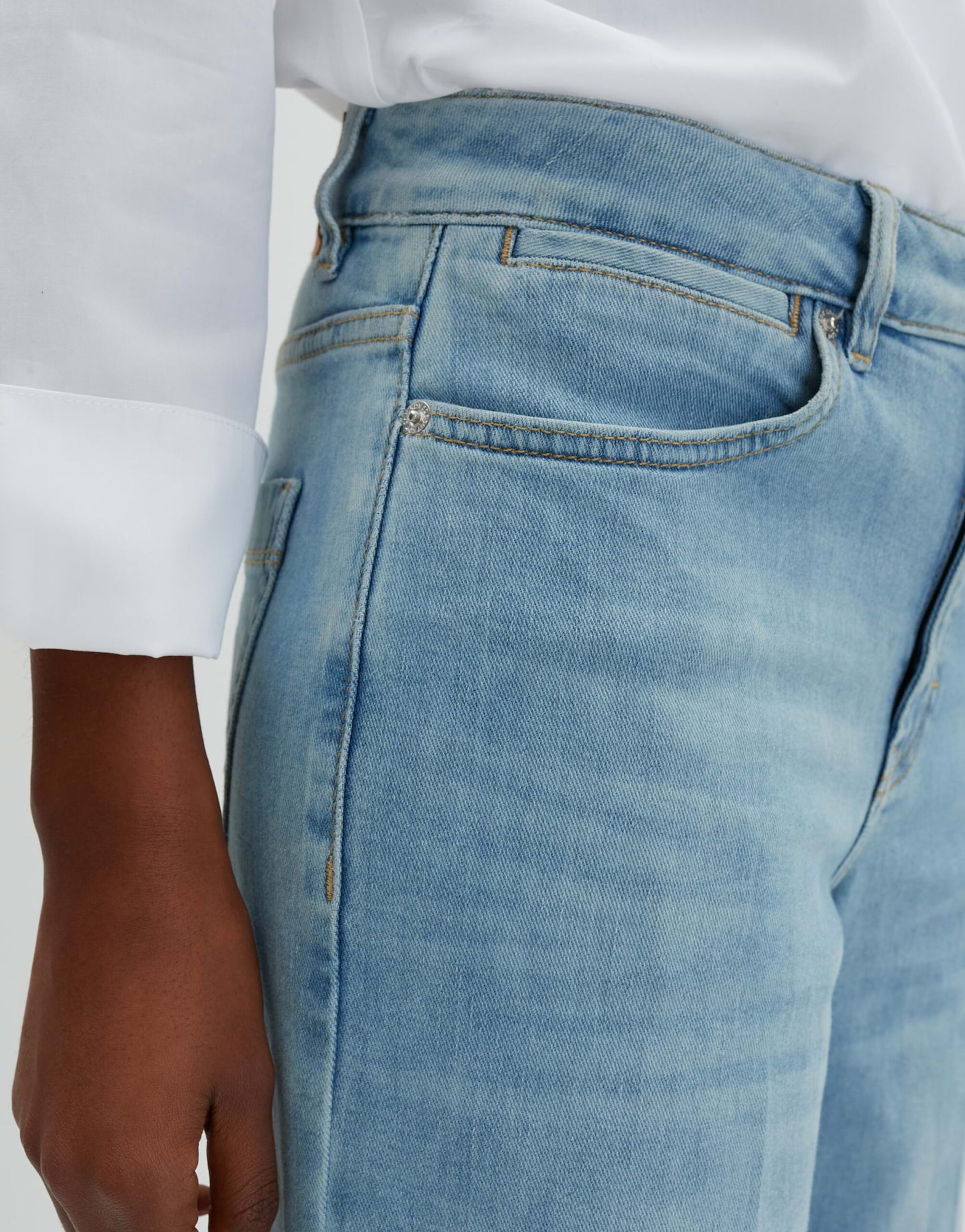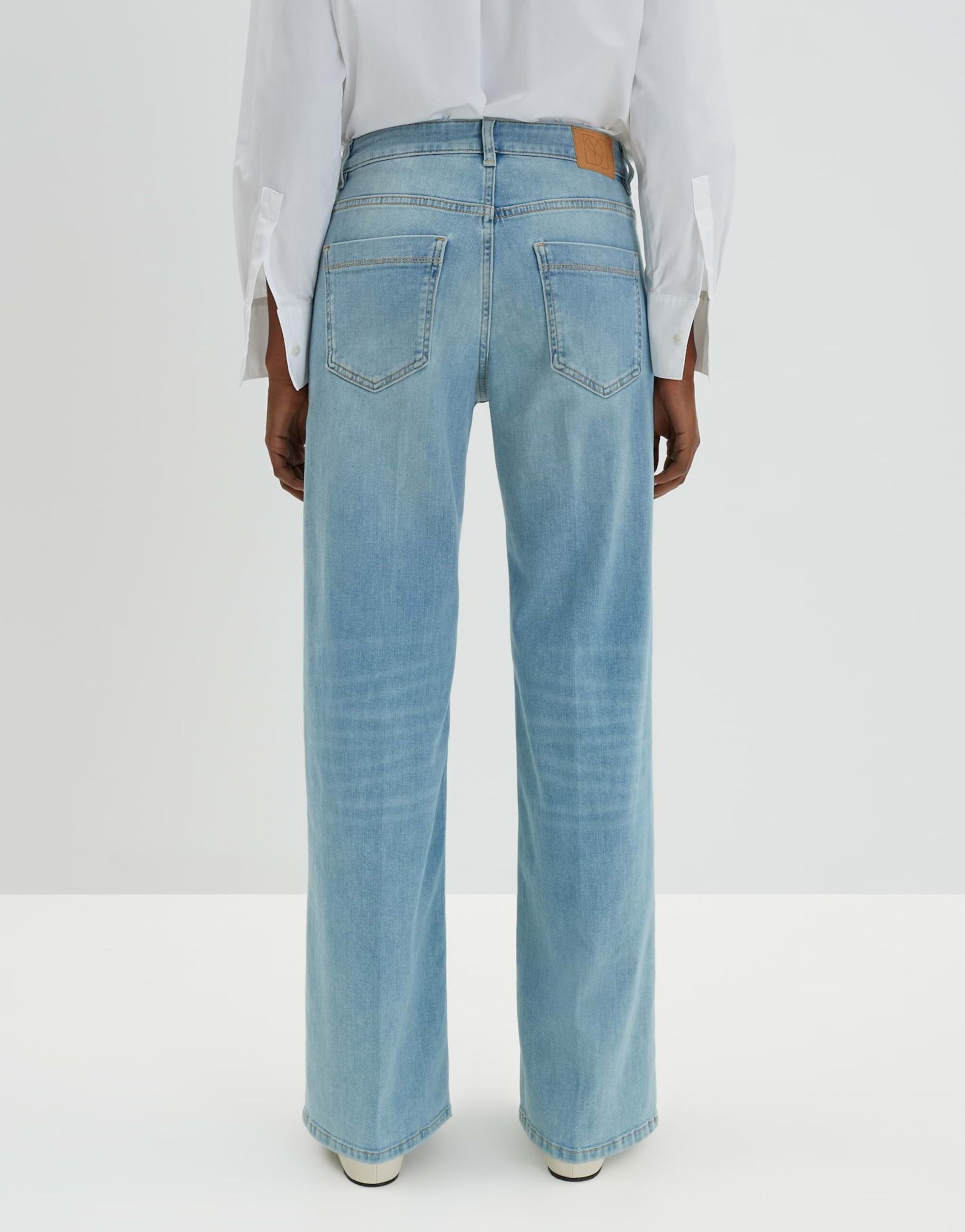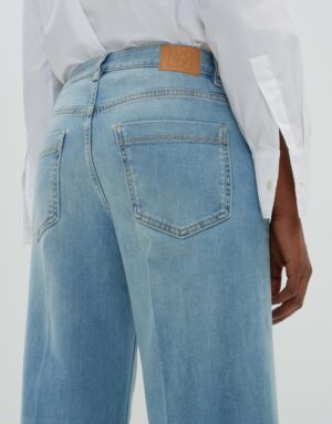 Die Cellma iconic Hose in Denim überzeugt mit einem weiten, geraden Beinverlauf und einer Hosenbein Innenlänge von ca. 80 cm in jeder Größe. Das 5-Pocket-Design wird durch Bügelfalten und leichte Used-Effekte ergänzt. Der verdeckte Zip-Fly Verschluss sorgt für einen modernen Look. Der Stoff ist leicht elastisch und bietet einen angenehmen Tragekomfort. Das Model ist 176 cm groß und trägt Größe 36.