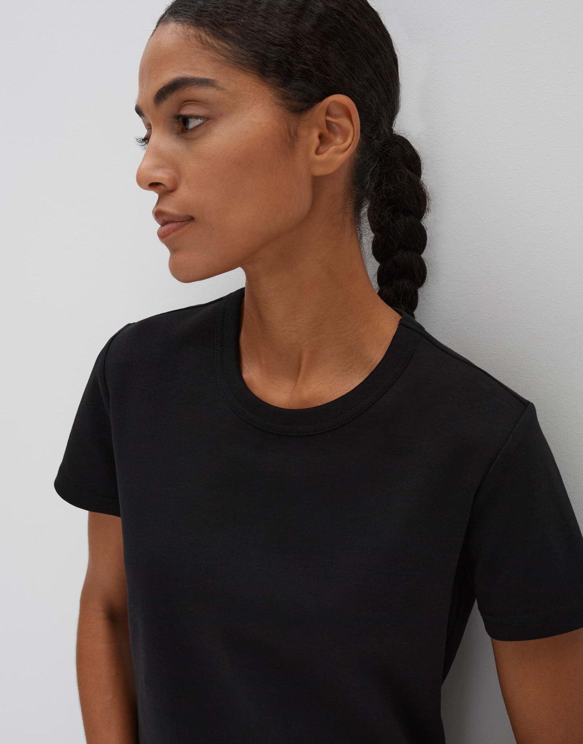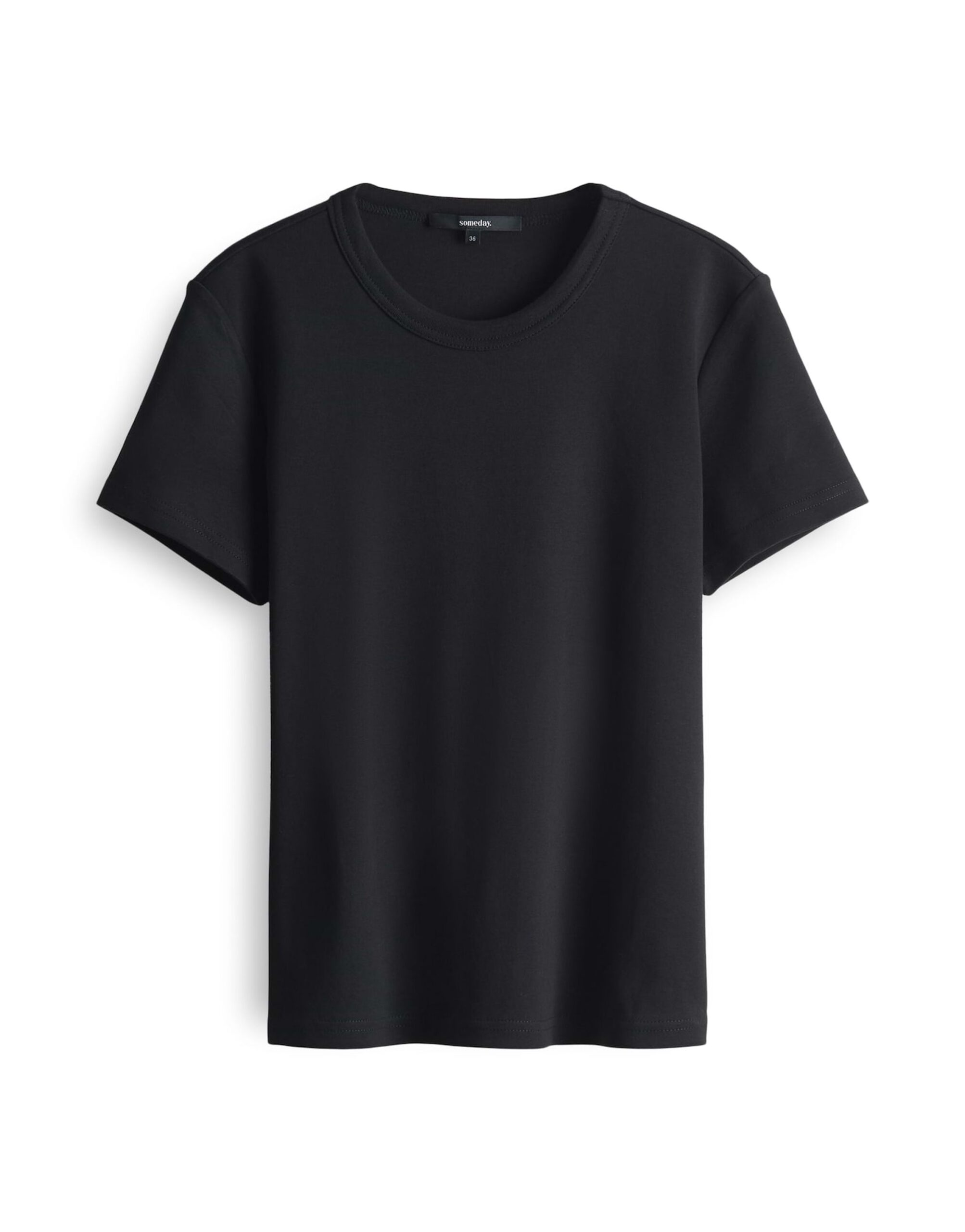 Das Keiki T-Shirt von SOMEDAY besticht durch seine schlichte Eleganz. Es hat einen geraden Schnitt, Kurzarm, einen klassischen Rundhalsausschnitt und besteht aus BCI-Baumwolle. Das Model ist 178 cm groß und trägt Größe 36. Die Rückenlänge beträgt ca. 60 cm bei Größe 36.