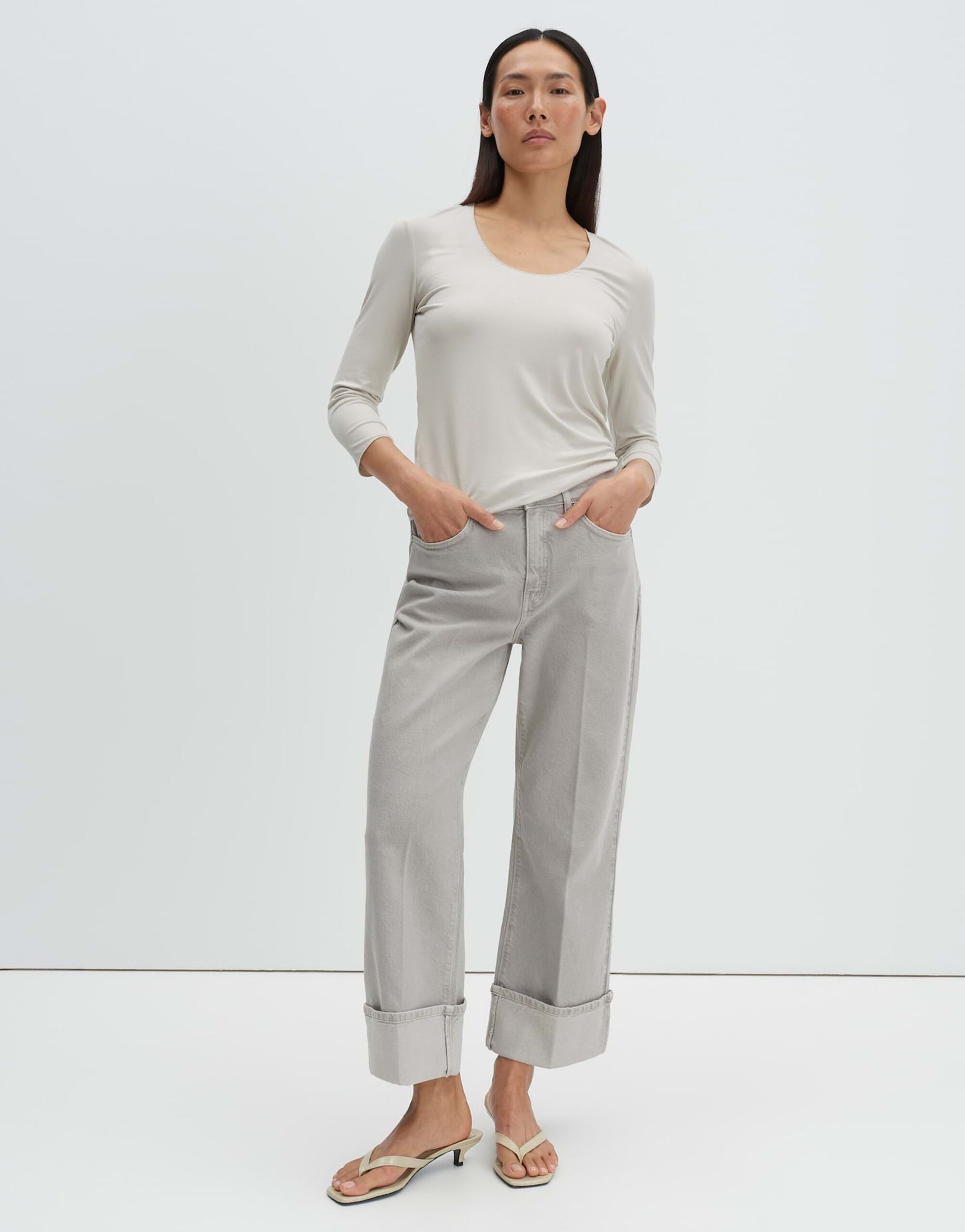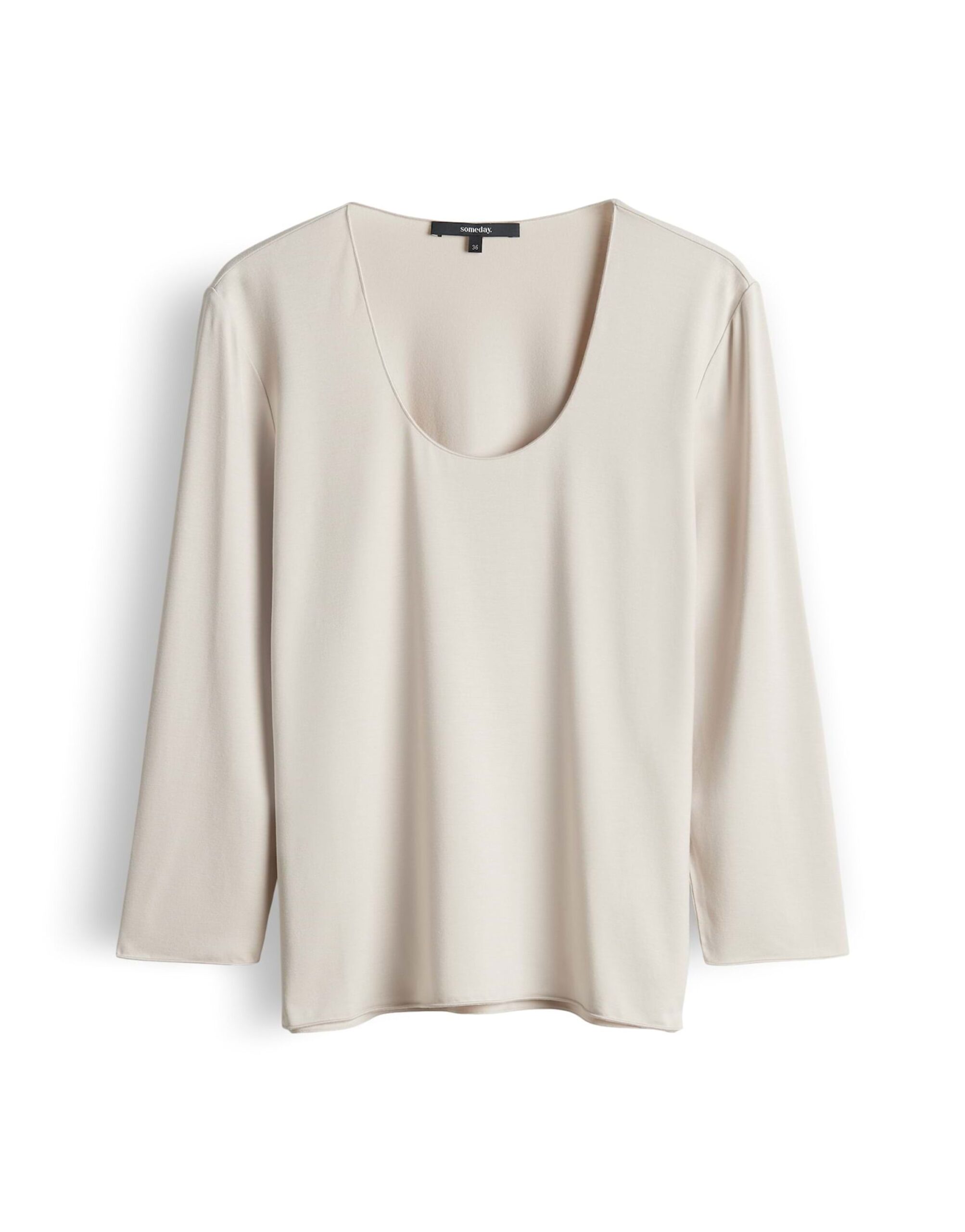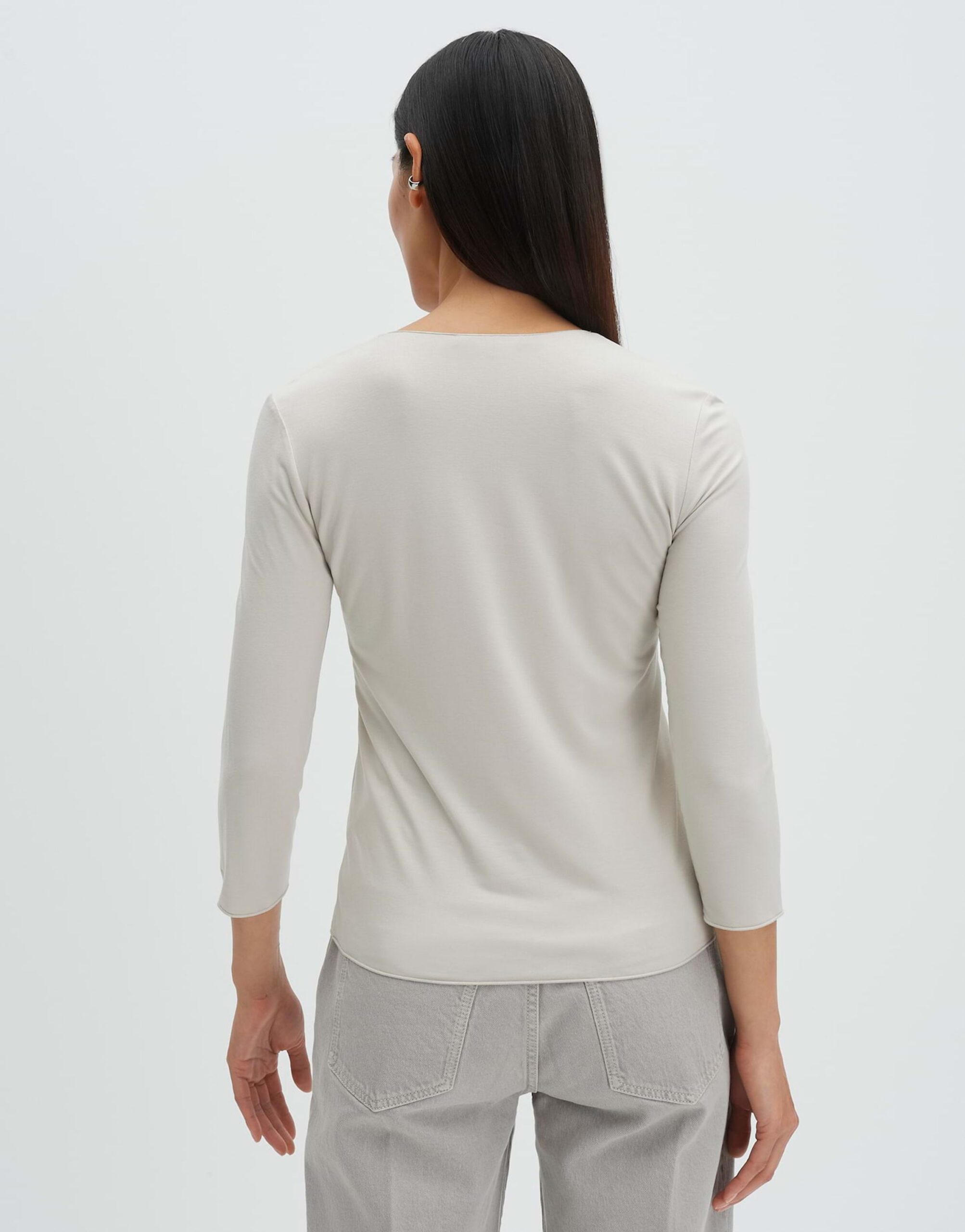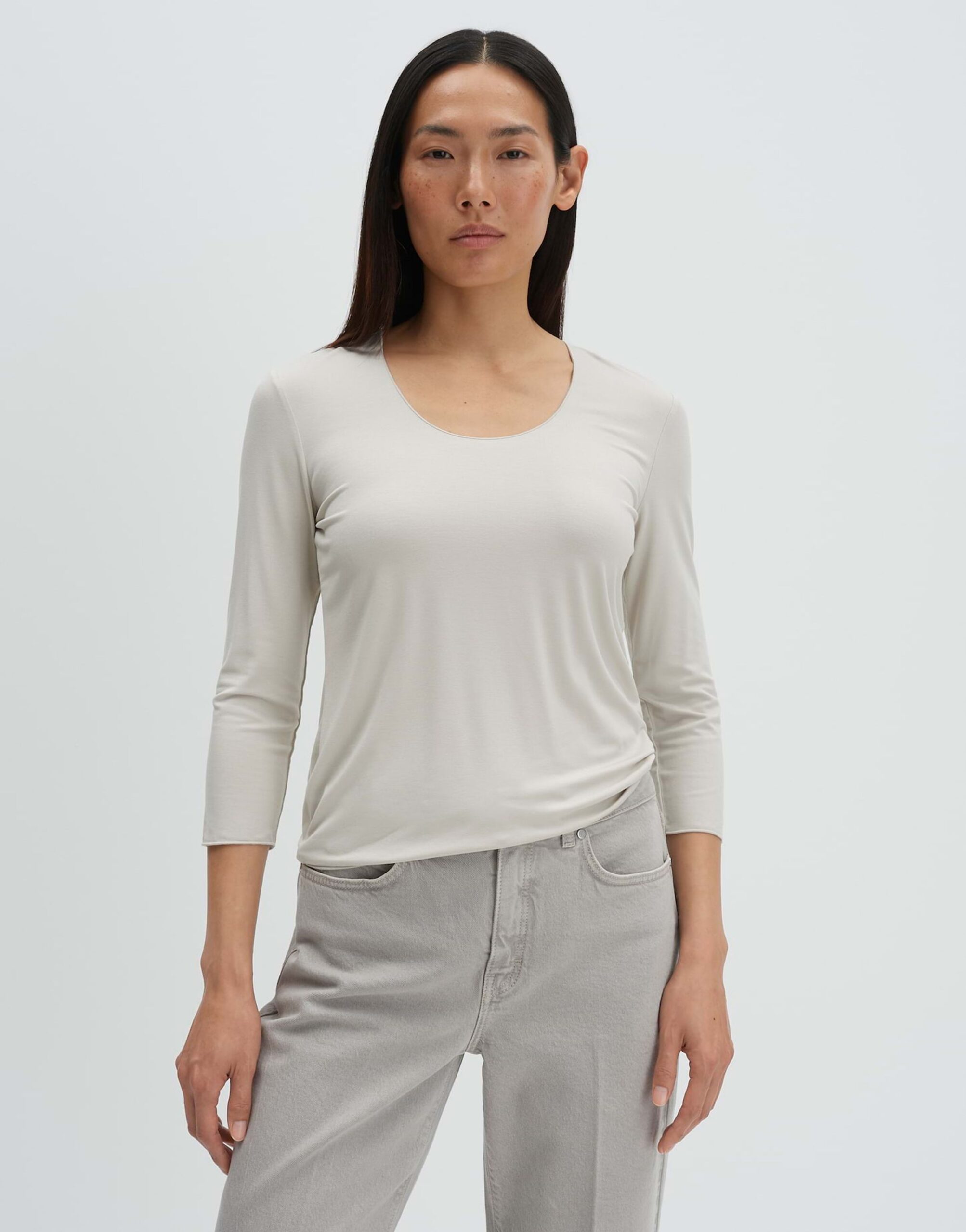 Das Kirosa fine Kleid in schmaler Passform besticht durch seinen weichen Griff und die elastische Jersey-Qualität. Mit 3/4 Arm, tiefem Rundhalsausschnitt und einer Rückenlänge von ca. 56 cm bei Größe 36 ist es ein vielseitiges Basic für jeden Tag.
