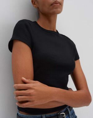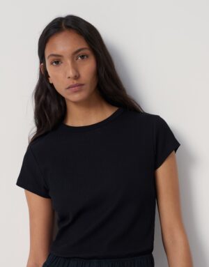 Das Kleoh Kurzarmshirt von SOMEDAY ist figurbetont geschnitten und hat eine normale Länge. Es verfügt über einen Rundhalsausschnitt und eine schmale Passform. Hergestellt aus einem BCI Cotton Mix Jersey mit feiner Rippstruktur, bietet es ein angenehmes Tragegefühl. Die Rückenlänge beträgt ca. 60 cm bei Größe 36.