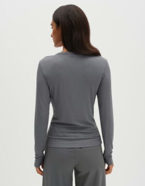 Das schmale Langarmshirt von Korell ist figurbetont geschnitten und besteht aus elastischem Jersey mit weicher Rippstruktur. Es verfügt über einen elastischen Rippbund am Halsloch und hat eine Rückenlänge von ca. 58 cm bei Größe 36. Erhältlich in verschiedenen Farben.