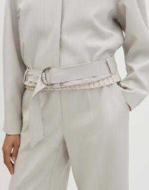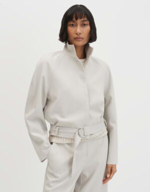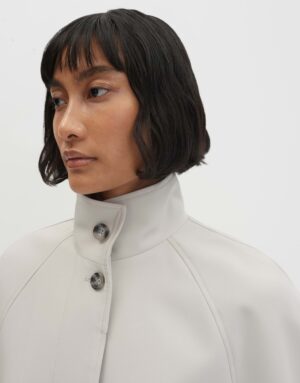 Das Narella Kleid von SOMEDAY besticht durch seine lockere Passform und den schmal zulaufenden Schnitt. Es ist leicht verkürzt geschnitten und verfügt über einen Stehkragen sowie einen Gürtel mit D-Ring. Der schwere Stoff mit glatter Oberfläche und das glatte Innenfutter sorgen für einen angenehmen Tragekomfort. Mit verdeckter Knopfleiste und Raglanärmeln.