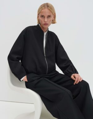 Lockeres, leicht verkürztes Blazer-Kleid mit Ballonärmeln und Blousonkragen.