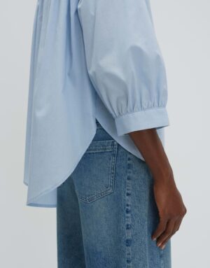 Die Bluse Zyntia von SOMEDAY besticht durch ihre weite Passform und den fließenden Fall. Mit 3/4 Arm, Rundhalsausschnitt und abgerundetem Saum ist sie ein vielseitiges Kleidungsstück. Die Chambray Optik und die Kräuselung am Ausschnitt verleihen der Bluse eine besondere Note. Perfekt für einen lässigen Look.