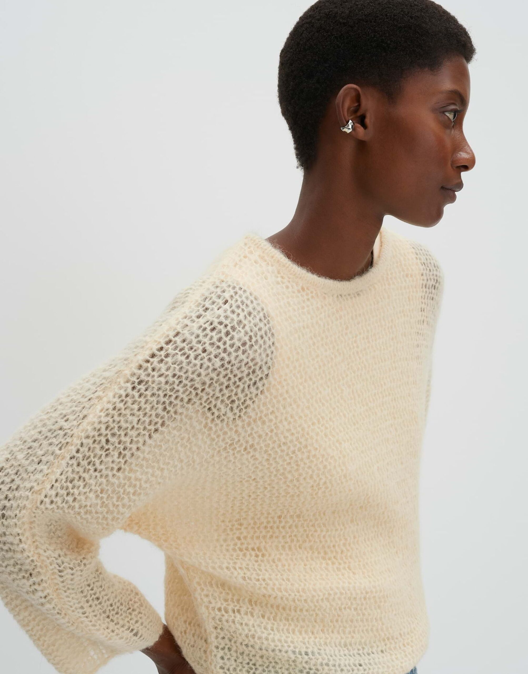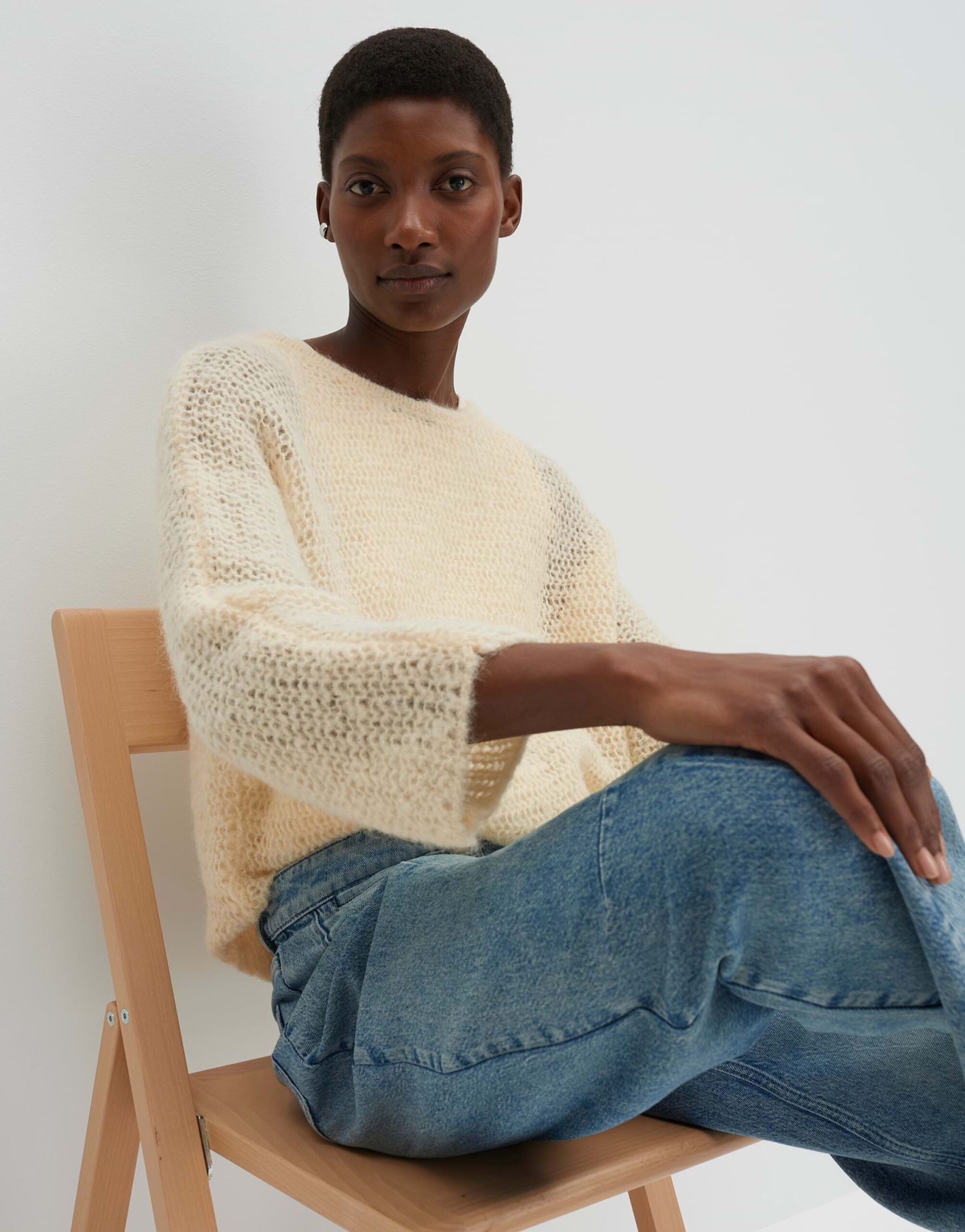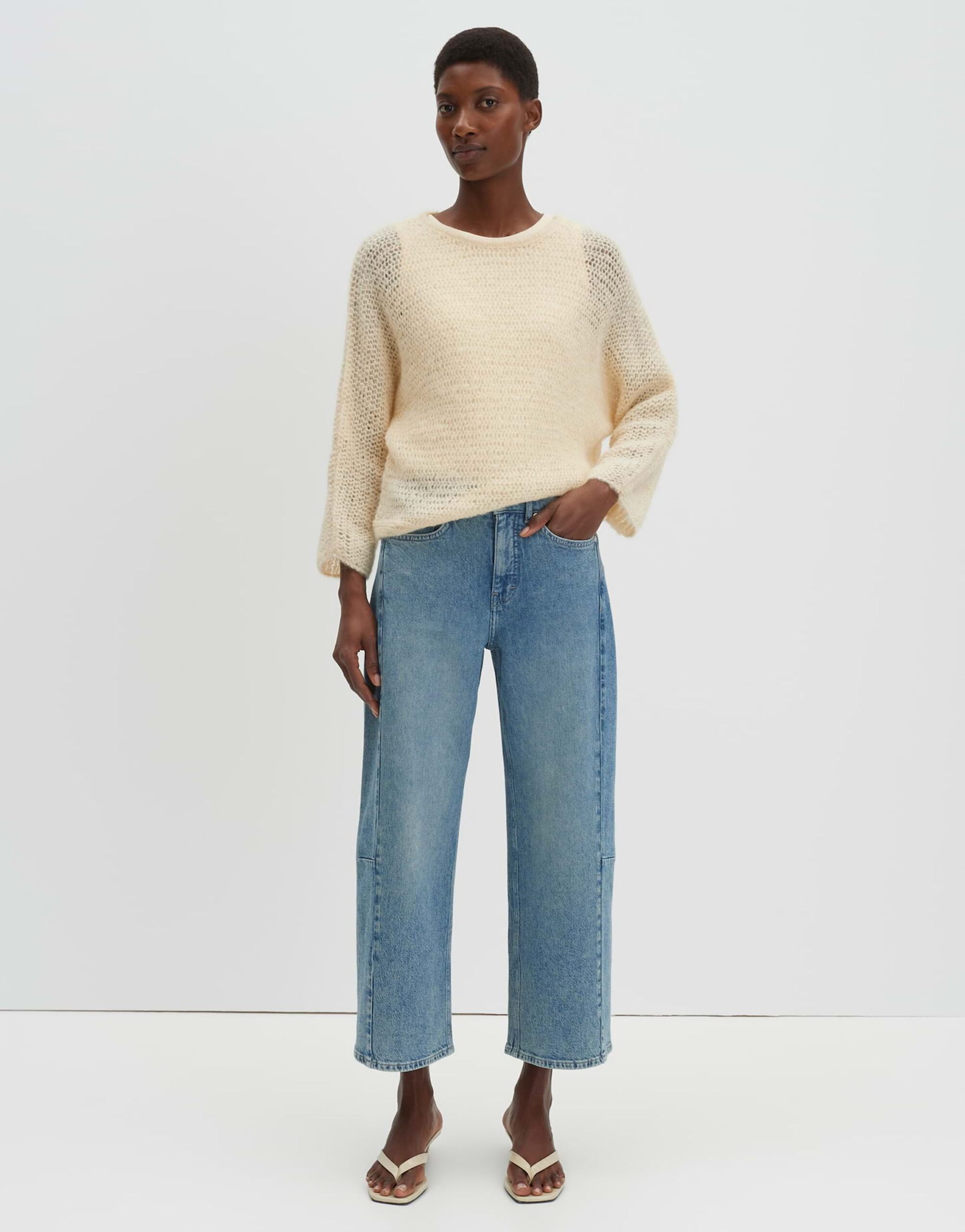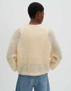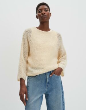Das Strickkleid Talume in weiter Passform und mit schmal zulaufendem Schnitt besticht durch seine verkürzte Länge und den verkürzten Fledermausärmeln. Der U-Boot-Ausschnitt verleiht dem Kleid eine moderne Note. Die Rückenlänge beträgt ca. 50 cm bei Größe 36. Das Model ist 176 cm groß und trägt Größe 36. Gefertigt aus weichem Strick mit einem leichten Griff und einem Lochstrickmuster, das eine leichte Transparenz erzeugt.