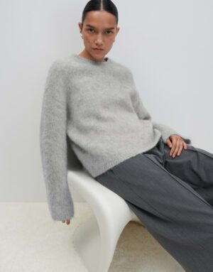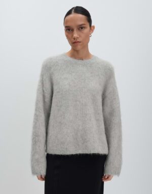 Das Strickkleid Tayana von SOMEDAY besticht durch seine weite Passform und den geraden Schnitt. Es verfügt über einen Rundhalsausschnitt, Langarm und Strickbündchen. Mit einer Rückenlänge von ca. 56 cm bei Größe 36 und einem extrem weichen Griff ist das Kleid wärmend und bietet einen weich fließenden Fall. Das Model ist 173 cm groß und trägt Größe 36.