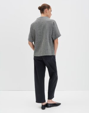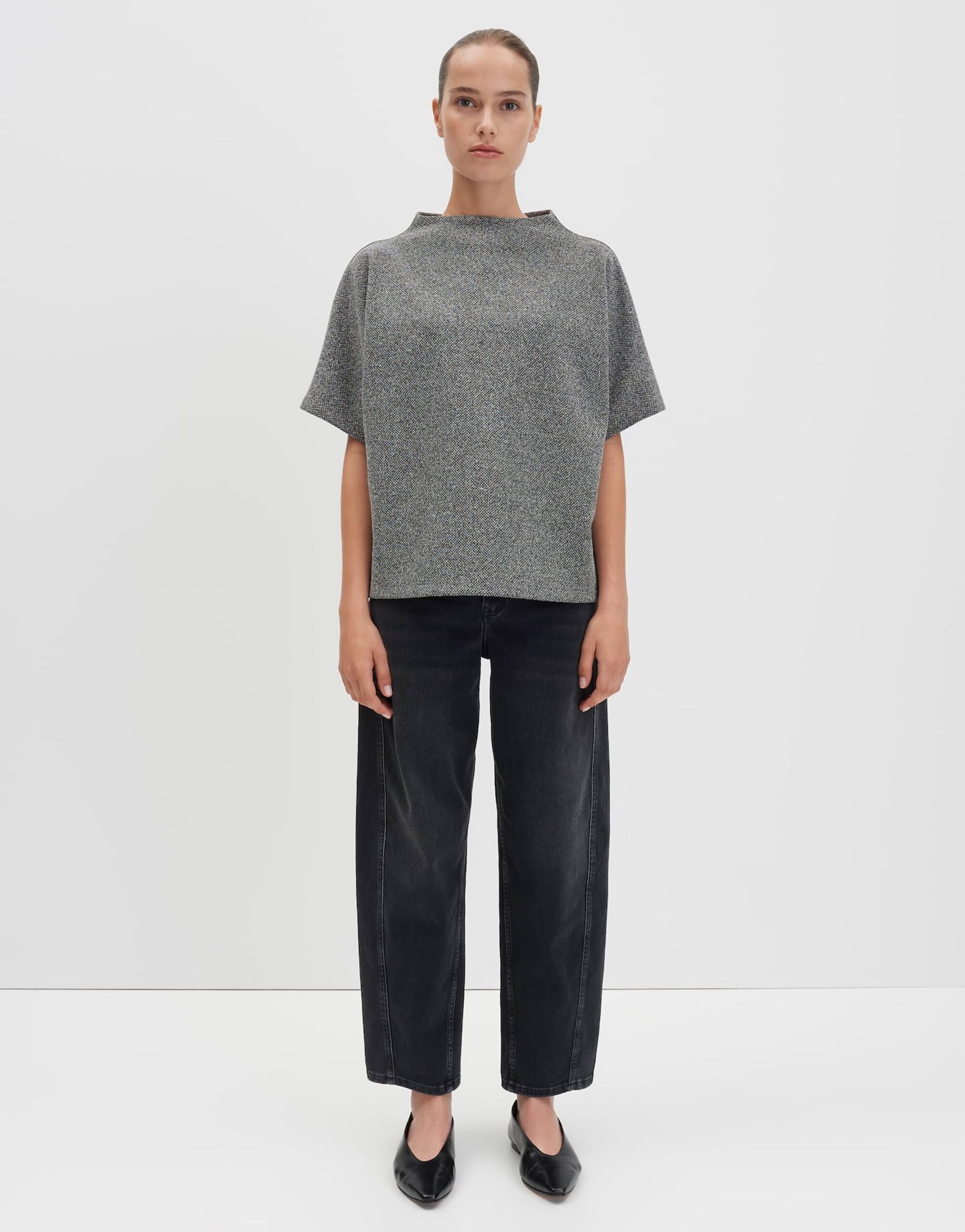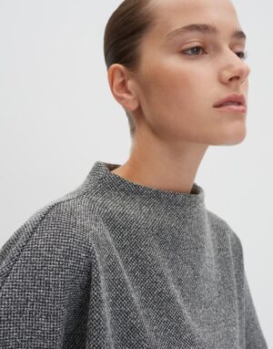 Das Sweatkleid Ujodie in Salz-Pfeffer-Optik besticht durch seine weite Passform, den geraden Schnitt und den überschnittenen Kurzarm. Mit einem Funnel Neck und Schlitzen in den Seiten ist es ein bequemes und dennoch stylisches Kleidungsstück. Die Rückenlänge beträgt ca. 58 cm bei Größe 36. Die Sweatware mit natürlichem Griff ist formstabil und pflegeleicht. Das Model ist 176 cm groß und trägt Größe 36.