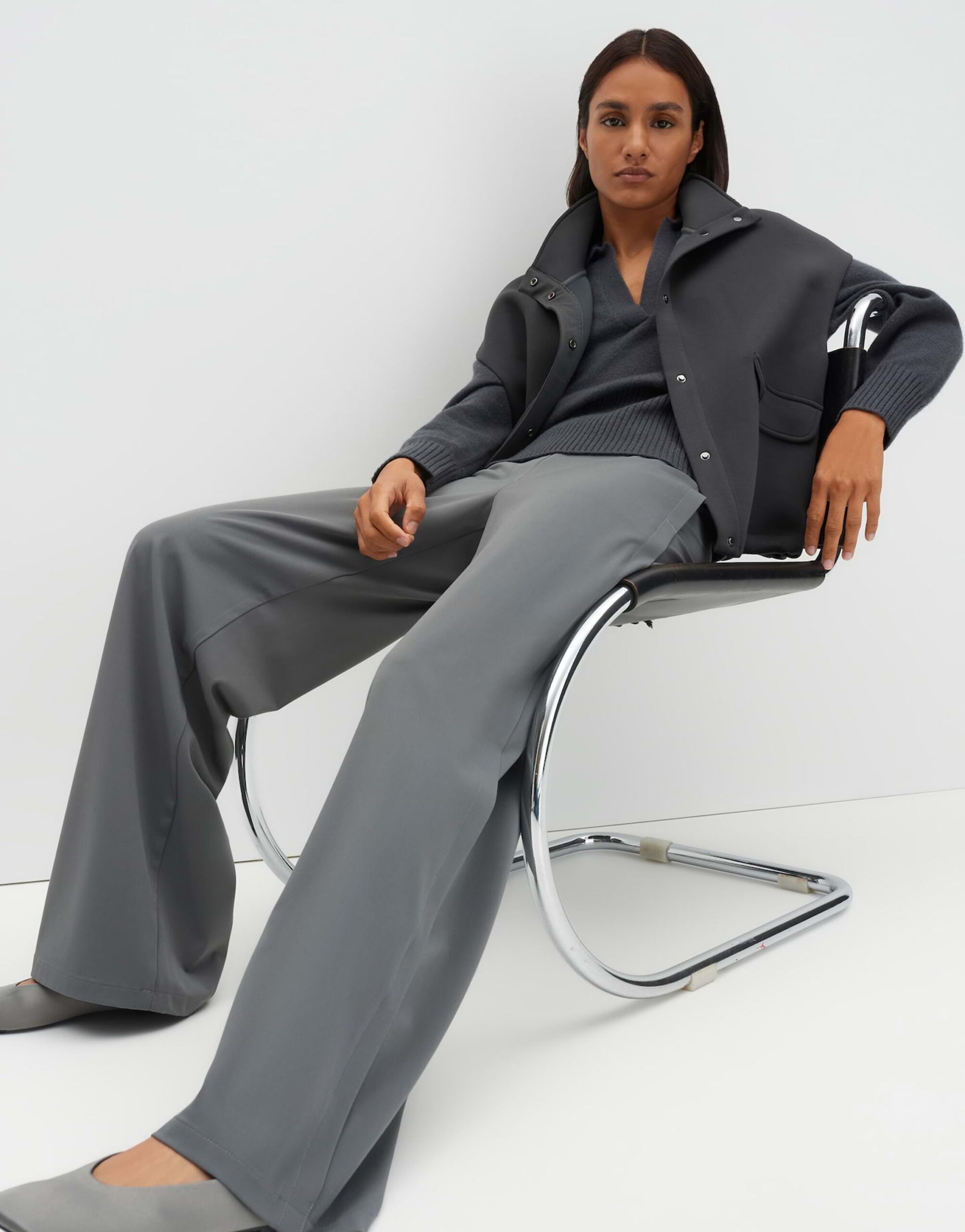 Die Charlie Wide Detail Hose von SOMEDAY besticht durch ihre dezente, diagonale Struktur und ihren glatten Griff. Mit einer Hosenbein Innenlänge von ca. 81 cm in jeder Größe und einem fließenden Fall ist sie ein bequemer Begleiter. Die Hose verfügt über Nahttaschen in der Seitennaht, eine Zier-Paspeltasche hinten und ein Faltendetail an der Seitennaht. Der angedeutete Hosenschlitz rundet das Design ab.