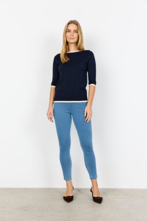 Der Pullover SC-DOLLIE 782 von SOYACONCEPT besteht aus 75% Viskose und 25% Nylon. Er zeichnet sich durch seinen modernen Stil und die bequeme Passform aus. Die halblangen Ärmel und der kontrastierende Besatz an Kragen und Manschetten verleihen dem Oberteil eine elegante Note. Kombinieren Sie den Pullover mit einer maßgeschneiderten Hose oder einem eleganten Rock für einen stilvollen Look.