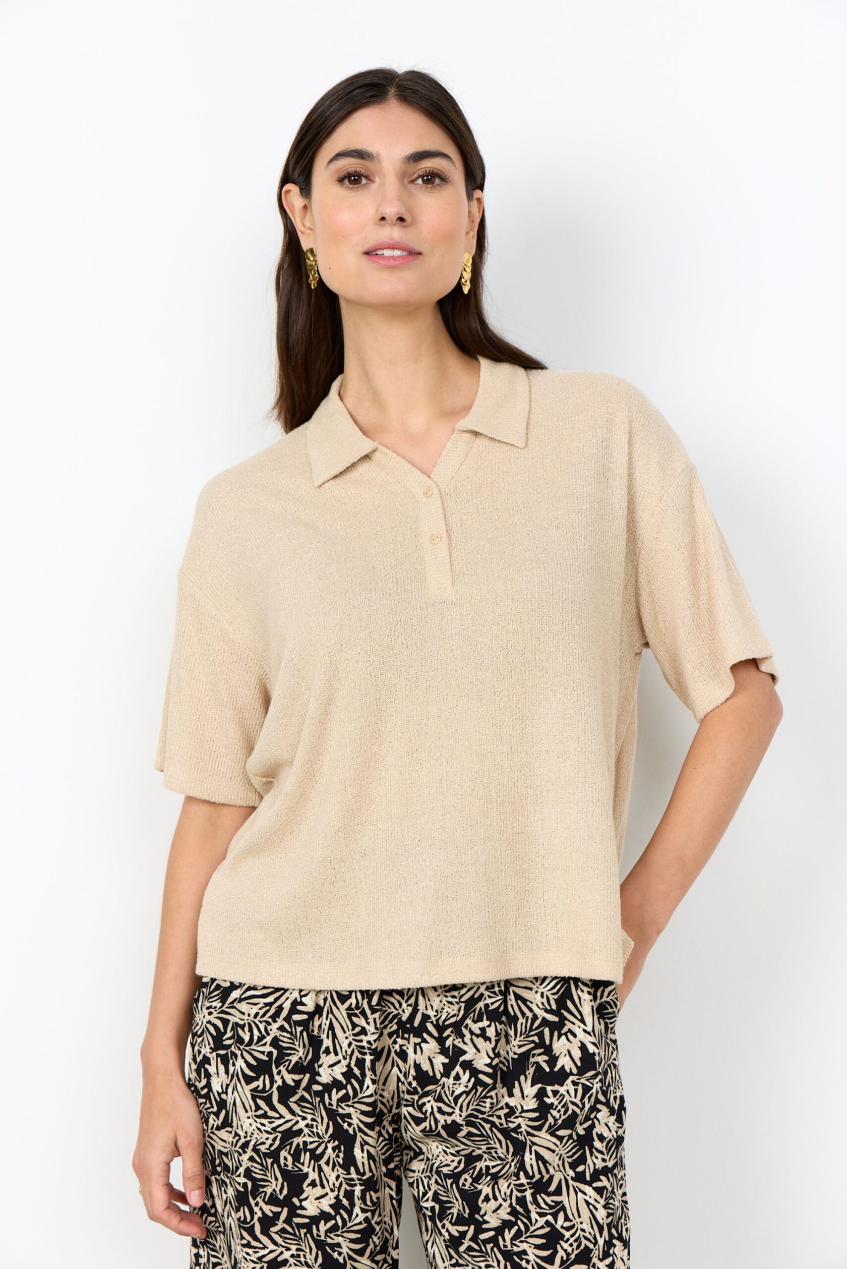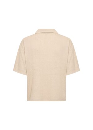 Die SC-DELIA 9 Bluse besteht aus einem Mix aus 60% LENZING™ ECOVERO™ Viskose, 38% recyceltem Polyester und 2% Elastan. Sie verfügt über eine weiche, gerippte Struktur, einen klassischen Kragen und eine Knopfleiste mit drei Knöpfen. Die lockere Passform macht sie vielseitig kombinierbar – ob mit maßgeschneiderten Hosen oder lässigen Jeans.