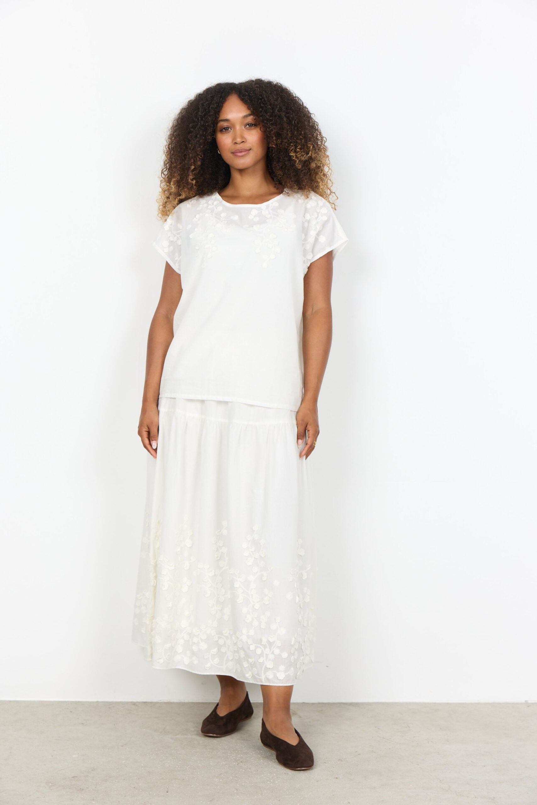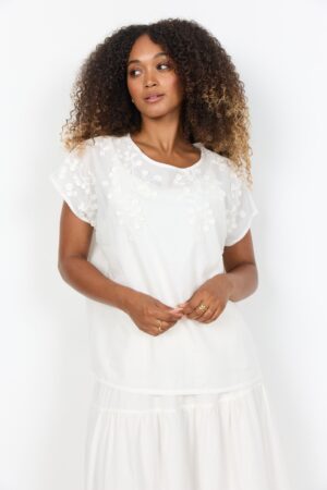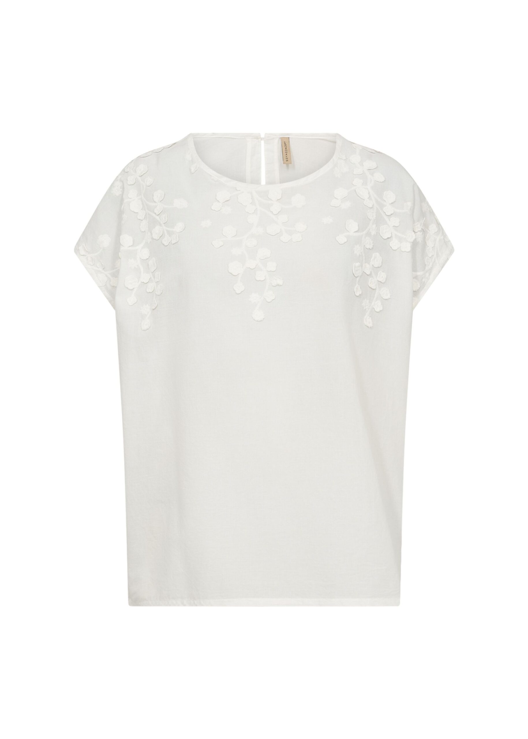 Das SC-FAHIMA 1 T-Shirt von SOYACONCEPT besteht aus hochwertiger Bio-Baumwolle und bietet eine entspannte Passform. Die elegante Blumenstickerei verleiht dem Shirt einen einzigartigen und coolen Look. Perfekt kombinierbar mit Jeans oder Hosen für den Alltag.