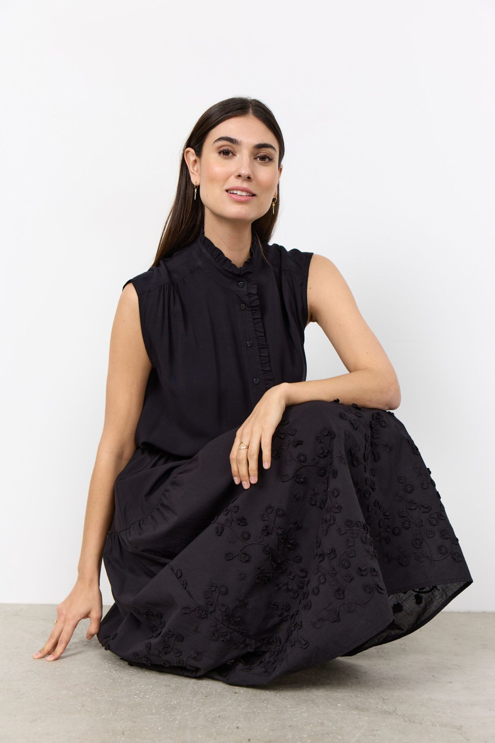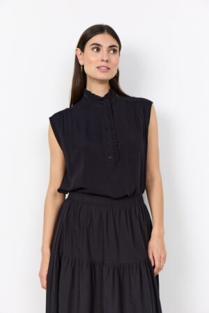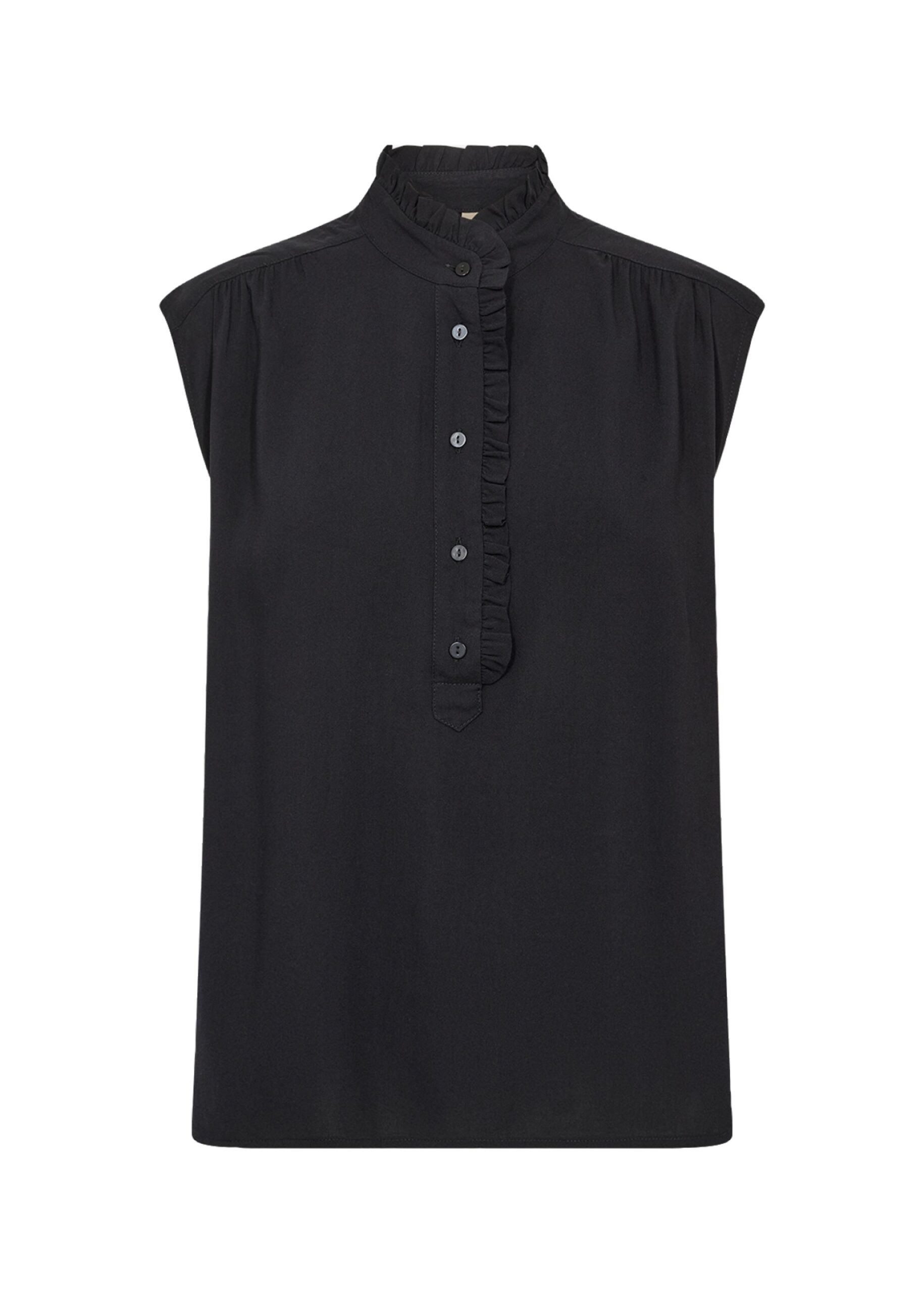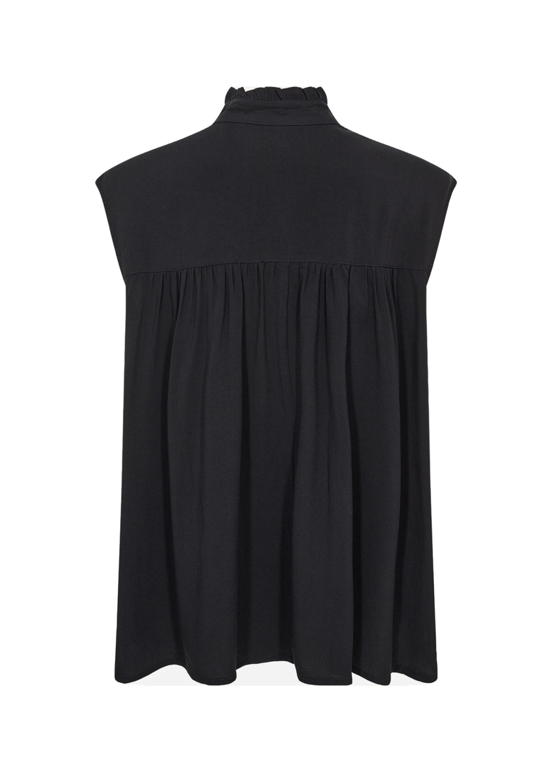 Die SC-RADIA 232 Bluse ist aus 100% LENZING™ ECOVERO™ Viskose gefertigt. Dieses elegante Oberteil verfügt über einen gerüschten hohen Kragen, eine detaillierte Knopfleiste und ein ärmelloses Design. Kombinieren Sie es mühelos mit Ihrer Lieblingshose für einen raffinierten Look.