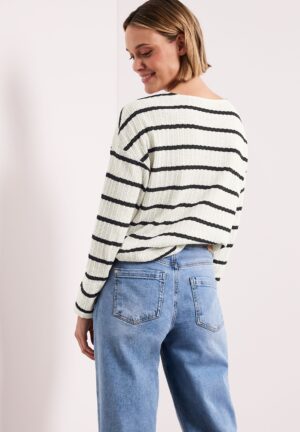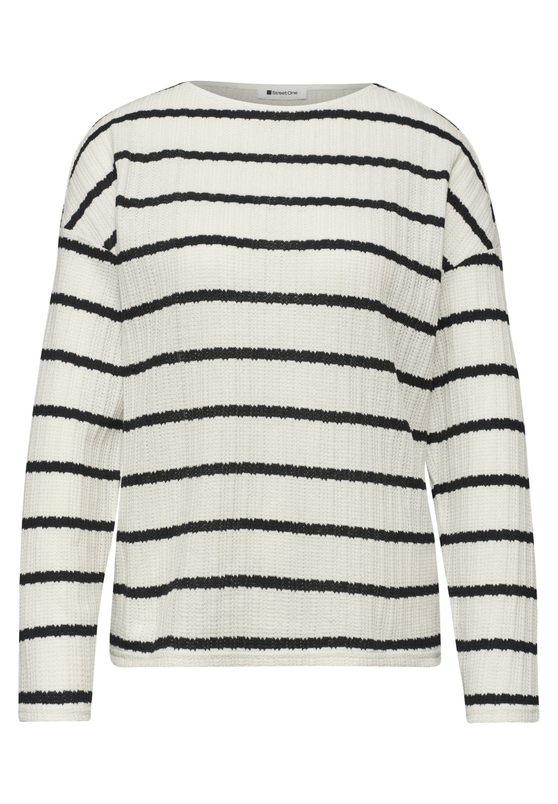 Das gestreifte Strick-Look-Shirt von STREET ONE ist ideal für den Alltag und lässt sich vielseitig kombinieren. Es bietet einen lässigen Look und sorgt dank hochwertiger Materialien für ein angenehmes Tragegefühl.