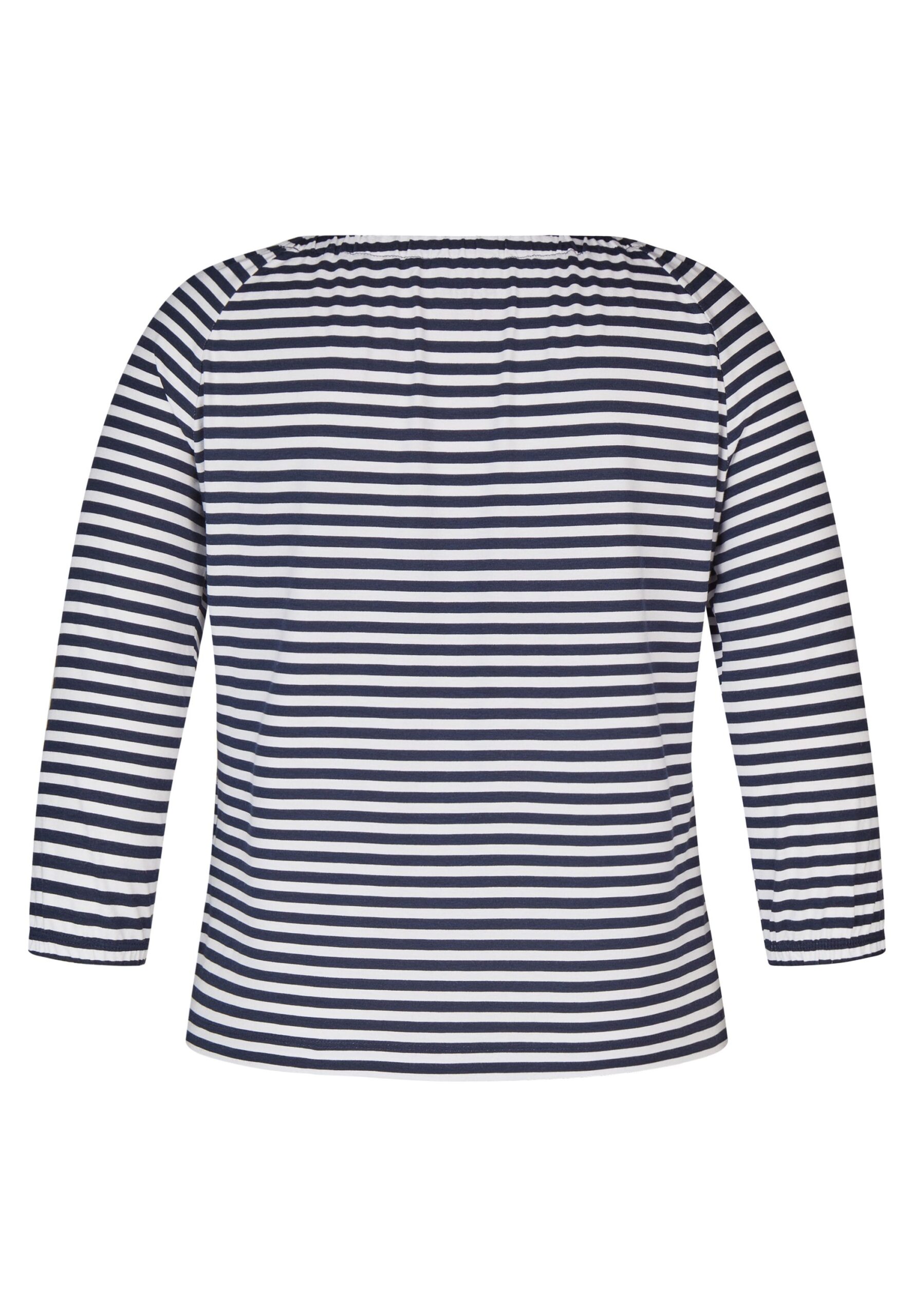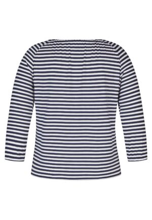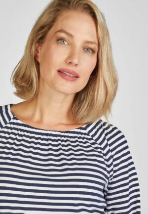 Dieses T-Shirt im Streifen-Design ist ein echter Renner im Kleiderschrank und vielseitig einsetzbar. Der Faltenwurf vom Kragen bis zur Brust macht aus dem klassischen Look einen individuellen Style. Kombinieren Sie das T-Shirt mit einer Hose in Kontrastfarbe und Sneakern für den Wow-Effekt.