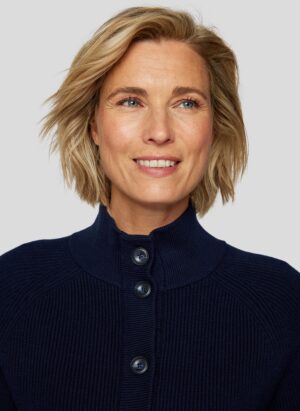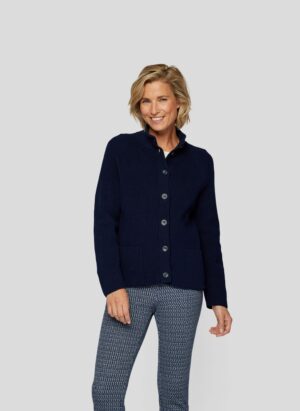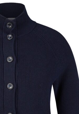 Diese gerade geschnittene Strickjacke aus 75% Baumwolle und 25% Polyester bietet Ihnen nicht nur ein angenehmes Tragegefühl, sondern auch eine klassische Optik. Der modische Stehkragen und der praktische Knopfverschluss verleihen der Jacke einen besonderen Charme. Mit den langen Ärmeln und dem Design in elegantem Marineblau ist sie die perfekte Ergänzung für Ihre Garderobe. Ideal für kühlere Tage lässt sich diese vielseitige Jacke sowohl lässig als auch schick kombinieren.