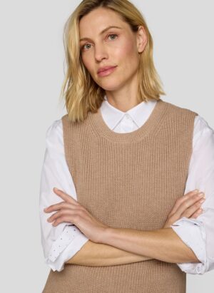 Diese Strickweste in weicher Baumwollmischung überzeugt mit klassischer Struktur-Optik und gerader Passform. Der Rundhalsausschnitt und die Seitenschlitze verleihen dem Modell eine moderne Note, ideal für Lagenlooks über Blusen oder Longsleeves. Die weiche Feinstrickqualität sorgt für Tragekomfort. Seitenschlitze bieten Bewegungsfreiheit. Der Rundhalsausschnitt ist mit Rippenstrick versehen. Das Strukturstrickdesign verleiht der Weste eine modische Optik.
