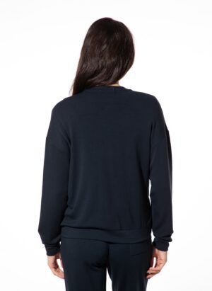 Diese dunkelblaue Sweatshirt-Jacke ist ein Highlight unserer Loungewear-Kollektion. Sie bietet optimalen Komfort und Stil für entspannte Tage zuhause. Die Jacke hat eine praktische Kapuze und ist aus weichem Material gefertigt. Perfekt zum Kombinieren mit anderen Loungewear-Stücken. Ein Must-Have für gemütliche Abende auf der Couch.