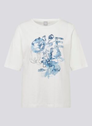 Dieses Shirt in klassischem Weiß überzeugt mit einem modernen Denim-Print und funkelnden Strassakzenten. Ein bequemes und stilvolles Oberteil, das jedes Outfit aufwertet. Trendiger Denim-Print, moderner Look mit floralem Motiv, Strassdetails für einen Hauch von Glamour, hochwertiger Baumwollmix, vielfältig kombinierbar zu Jeans, Röcken oder unter Blazern.