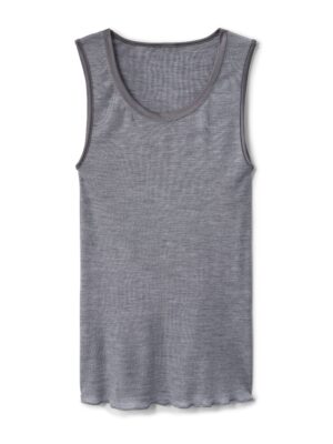 Fine rib tank top for the perfect fit, like a second skin. Breathable material that regulates body temperature and stretchy for comfort. Features a fine lettuce hem on the bottom of the shirt. Ideal as a base layer on cold days.