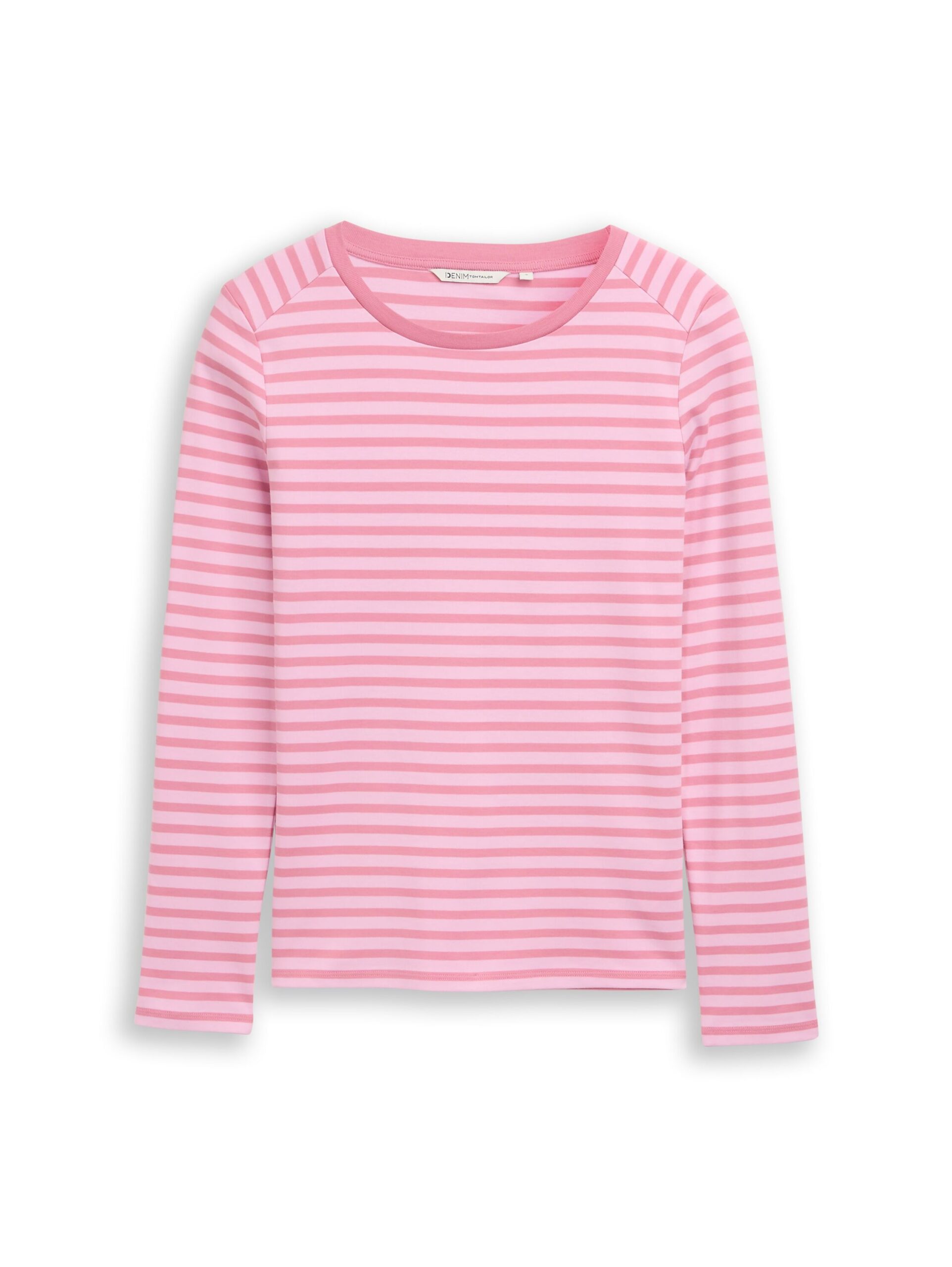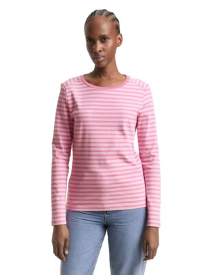 Das TOM TAILOR Langarmshirt Regular Fit mit Rundhalsausschnitt besteht aus weicher Bio-Baumwolle und überzeugt mit einem Streifenmuster. Die atmungsaktive Qualität sorgt für hohen Tragekomfort.