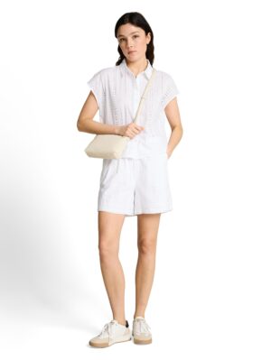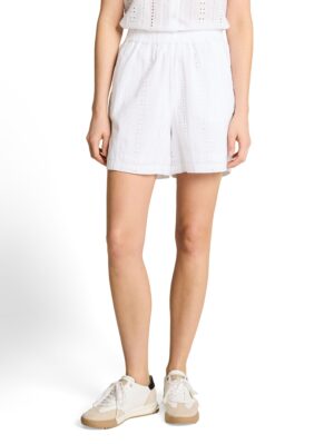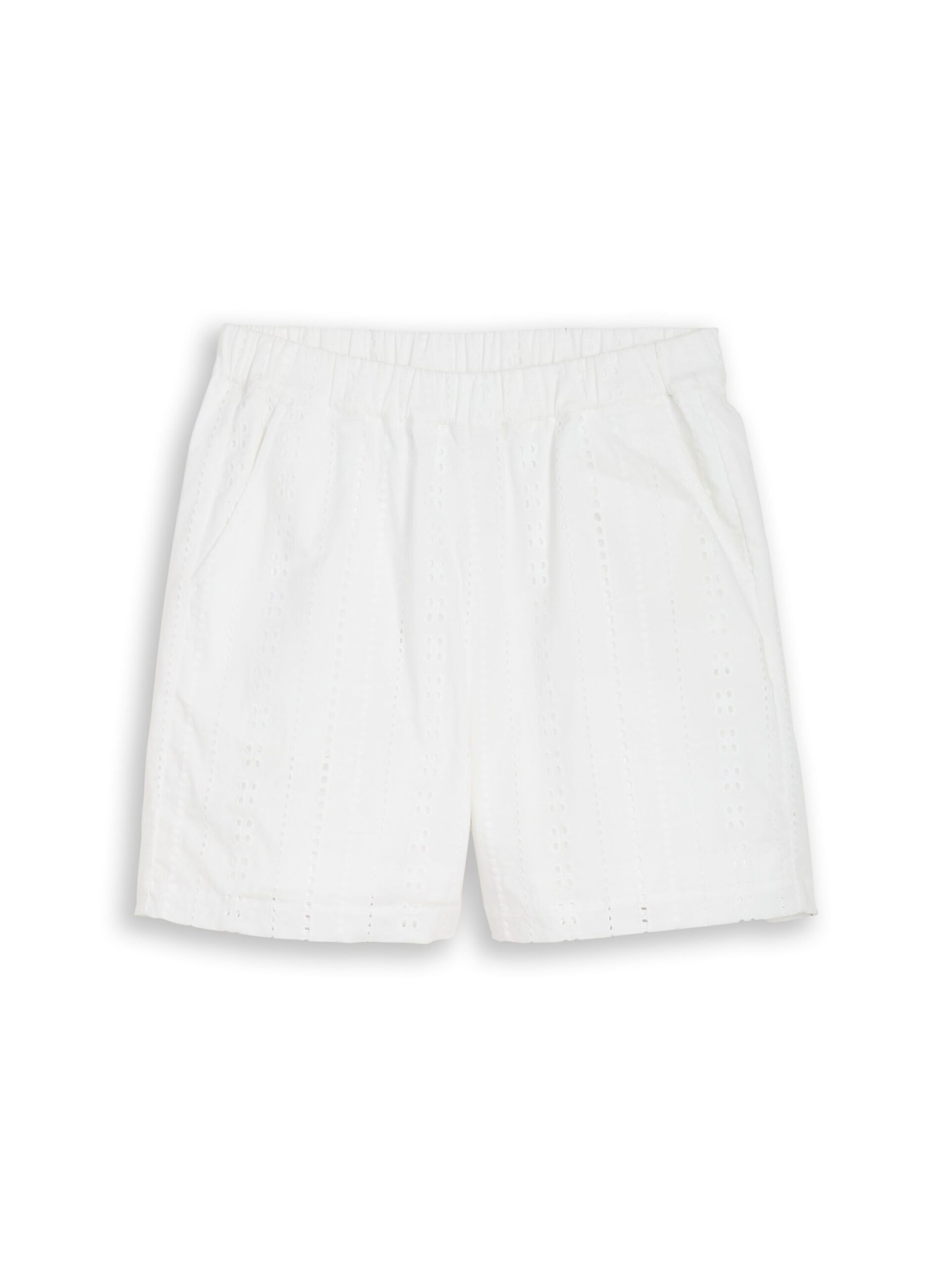 Entdecke die bequemen Shorts mit Lochstickerei aus Baumwolle, perfekt für warme Tage. Die Shorts verfügen über seitliche Eingriffstaschen und bieten einen angenehmen Tragekomfort. Ein Must-Have für die Sommergarderobe!