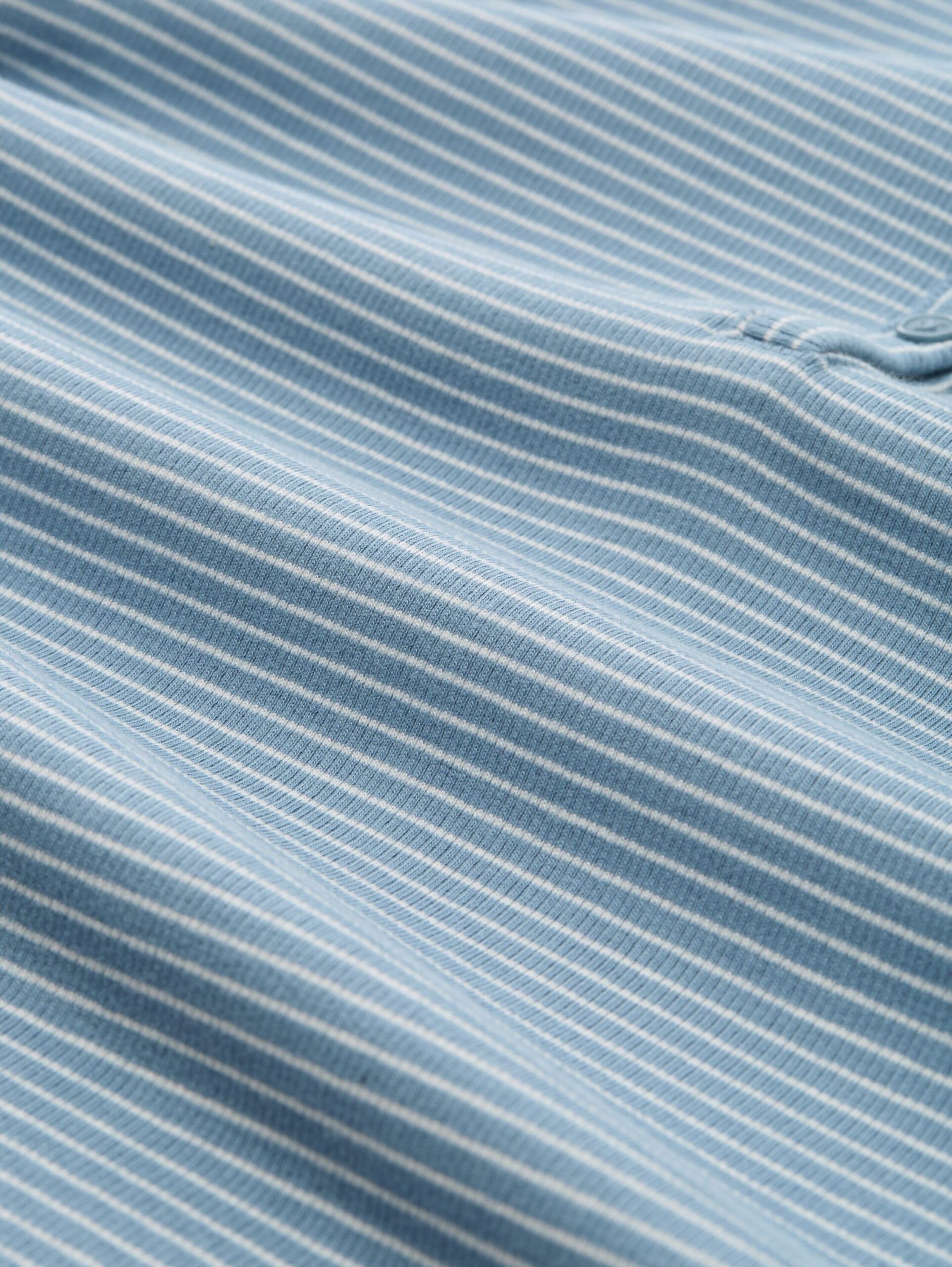 Das Slim Fit Henley Langarmshirt mit Streifenmuster und V-Ausschnitt aus einem Ripp-Baumwollstoff mit Stretch-Anteil bietet ein angenehmes Tragegefühl.