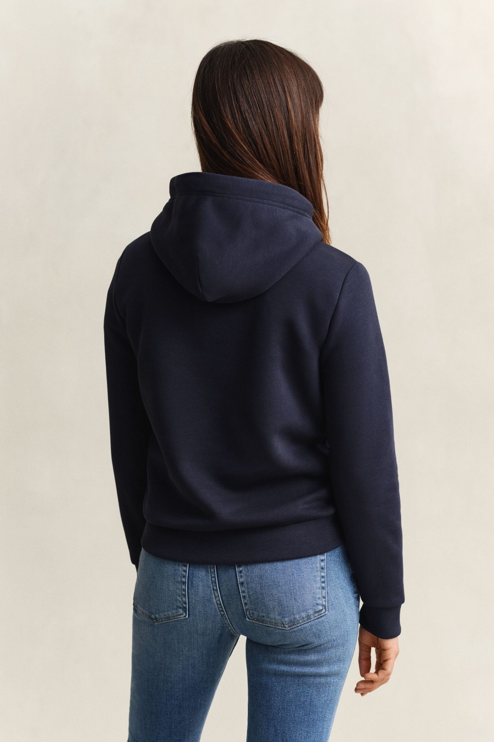 Dieser Regular Fit Hoodie mit Kapuze und Kordelzug ist perfekt für einen lässigen Look. Die Rippenbündchen an Ärmeln und Saum sorgen für eine bequeme Passform. Die grafische GANT-Stickerei auf der Brust verleiht dem Hoodie eine sportliche Note. Waschen Sie ihn mit ähnlichen Farben und auf links, um die Qualität zu erhalten.
