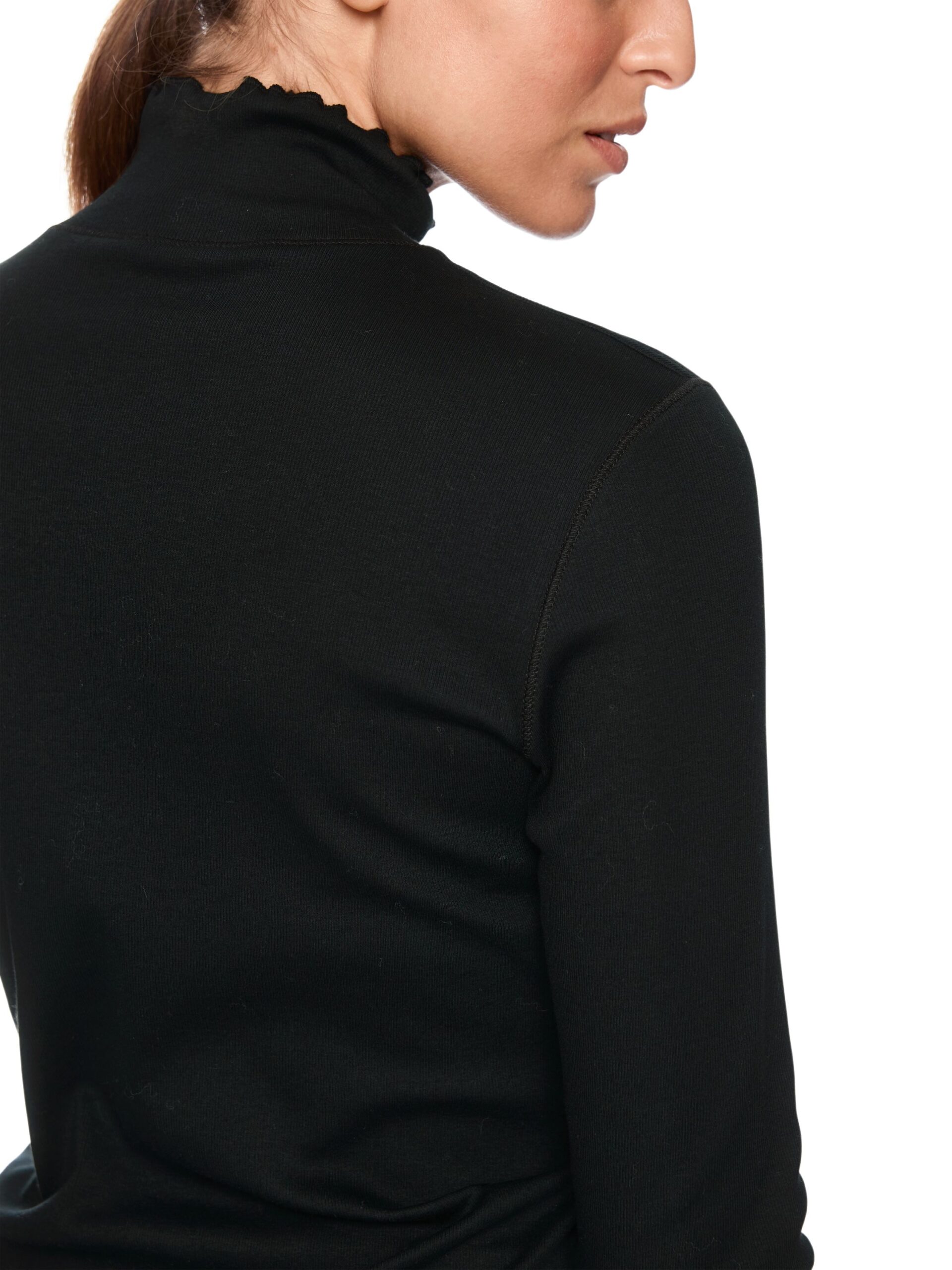 Das unifarbene Langarmshirt mit Rollkragen und Rollsaum an Armen und Hals überzeugt durch seine hochwertige Materialmischung aus Baumwolle und Elastan. Der taillierte Schnitt und der weiche Griff sorgen für optimalen Tragekomfort und eine perfekte Passform. Perfekt für den Alltag oder besondere Anlässe. Das Model ist 179 cm groß und trägt Größe N3/38.