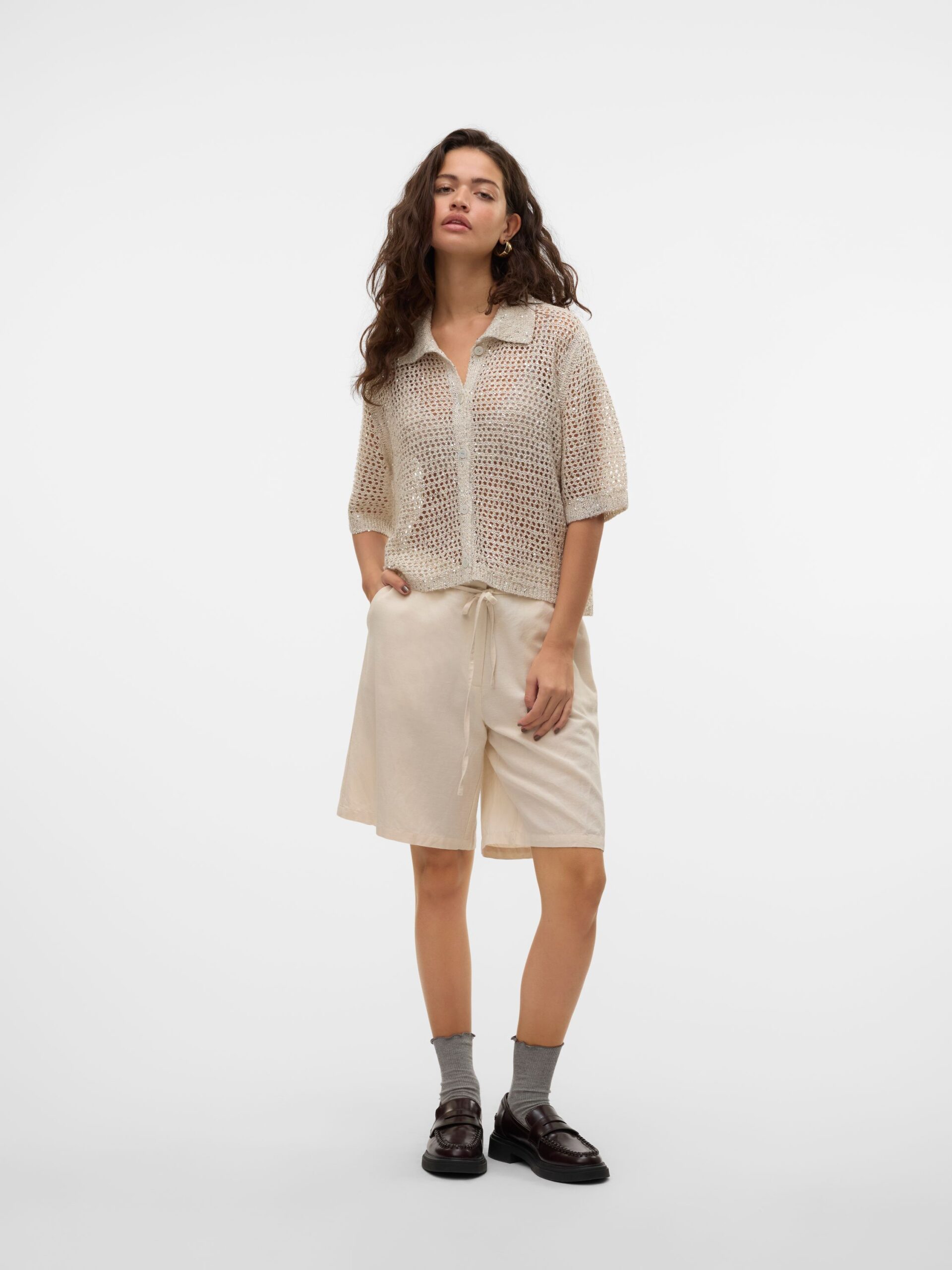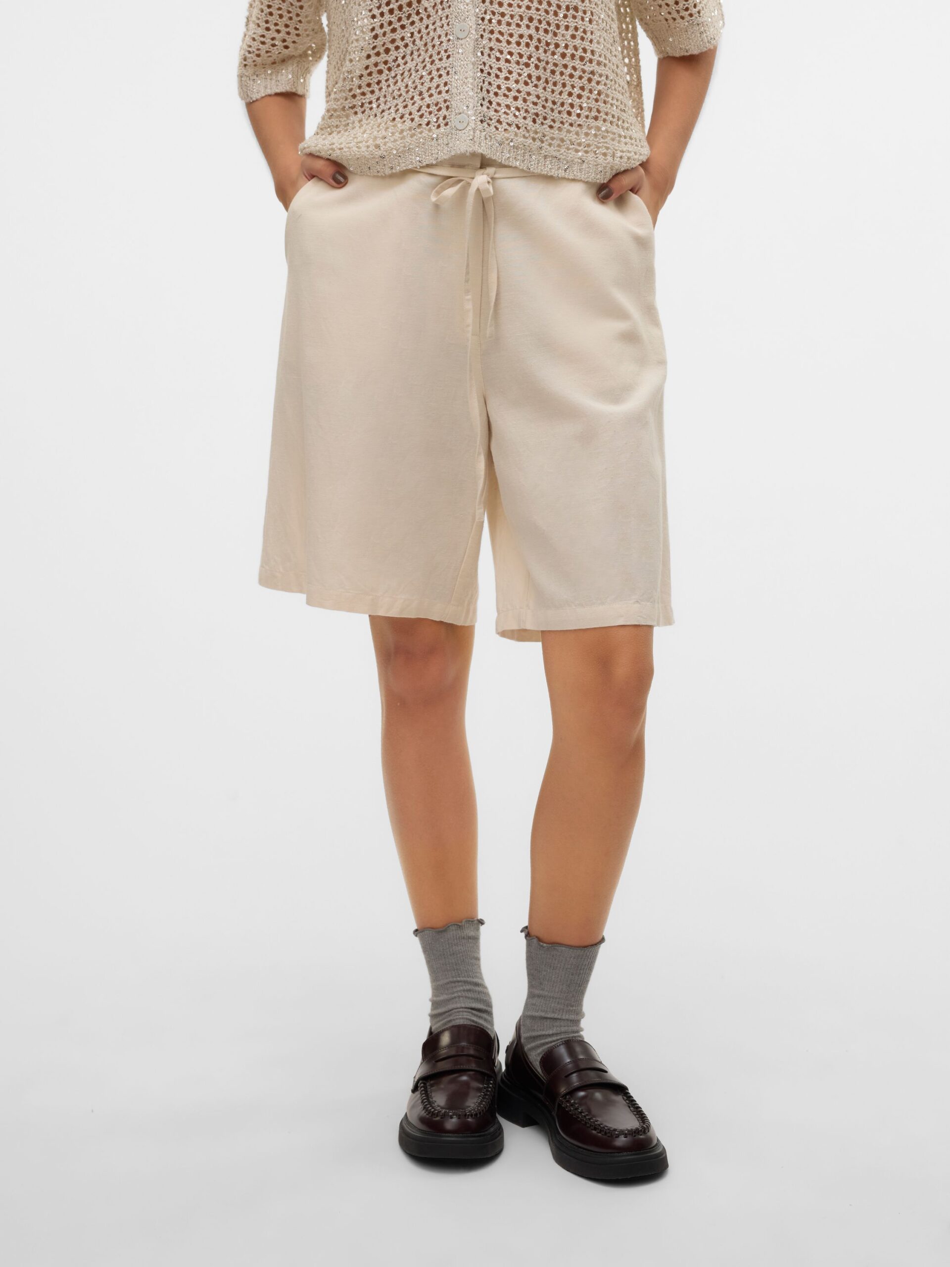 Cool und luftig. Shorts sind das Nonplusultra im Sommer und jede Frau braucht mindestens ein Paar. Diese stylishen Shorts sind wie für den Sommer und warme Temperaturen gemacht. Du kannst sie ganz einfach schicker oder lässiger stylen, je nach Stil und Laune. – Produkttyp : Shorts – Verschluss : Reißverschluss – Taschen : Seitentaschen – Taille : Mittlere Taille – Details : Gürtel in der Taille – Passform : Normal geschnitten