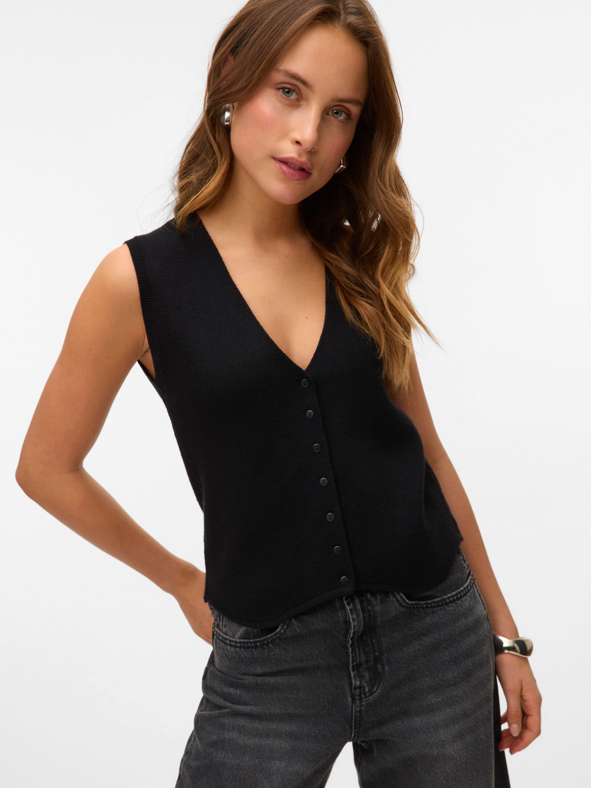 Ein Must-have, das in jeder Saison für einen bequemen Wohlfühllook sorgt? Wenn du uns fragst, ist ein gestricktes Oberteil das ganze Jahr über ein echter Favorit! Finde das richtige Oberteil für dich und kombiniere es zum Beispiel mit einer Jeans. Pssst… pass deine Schuhe an die Jahreszeit an, damit du mit deinem Look auffällst. – Produkttyp : Weste – Hals : V-Ausschnitt – Ärmel : Ohne Ärmel – Verschluss : Knopfleiste – Länge/Größe : Dieses Produkt fällt größengetreu aus – Passform : Normal geschnitten