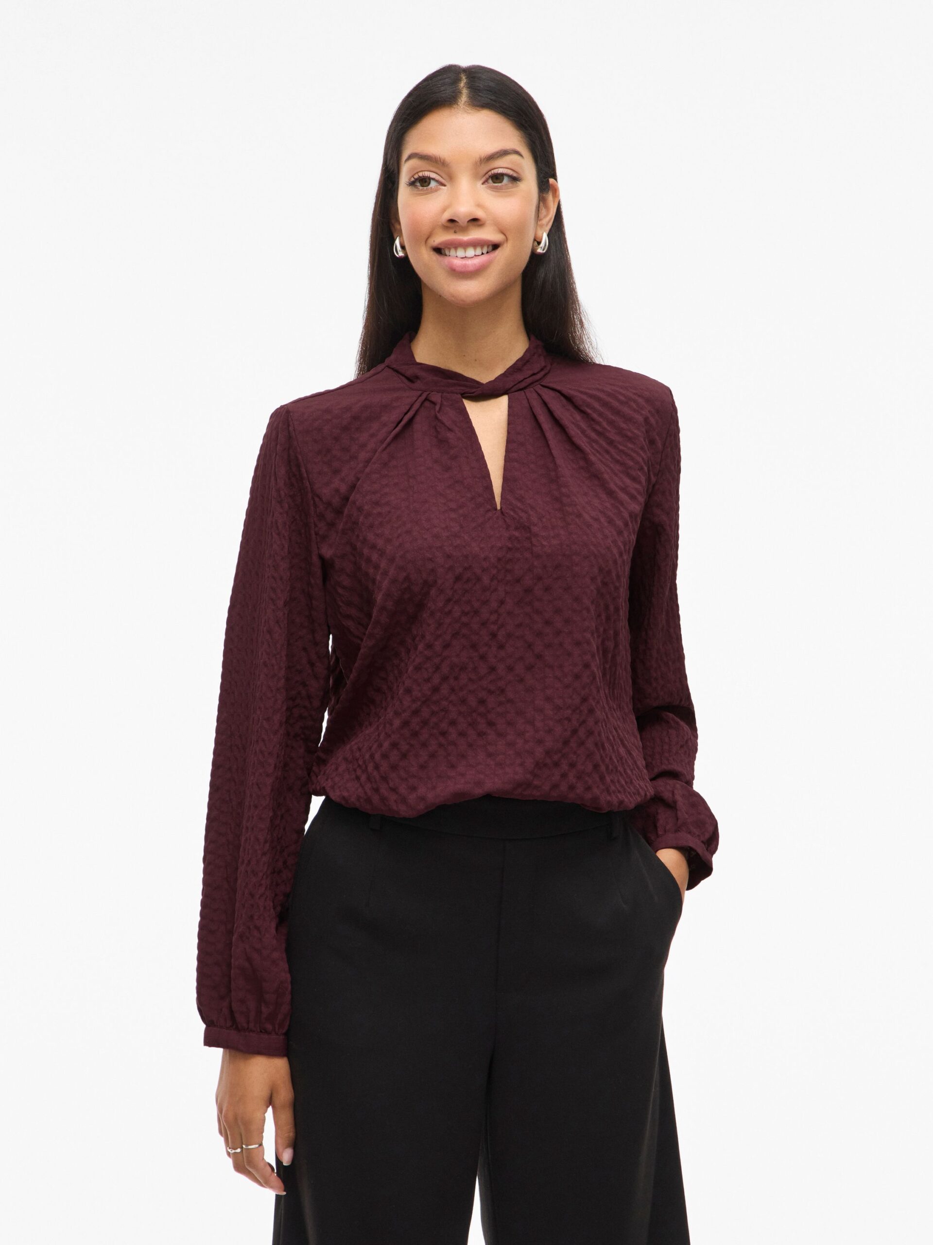 Die VIVEAMA Bluse von VILA mit hochgeschlossenem Hals und voluminösen Ärmeln bietet einen bleibenden Eindruck. Der Knopf- und Schlingenverschluss sowie die normale Passform machen sie ideal für verschiedene Anlässe.