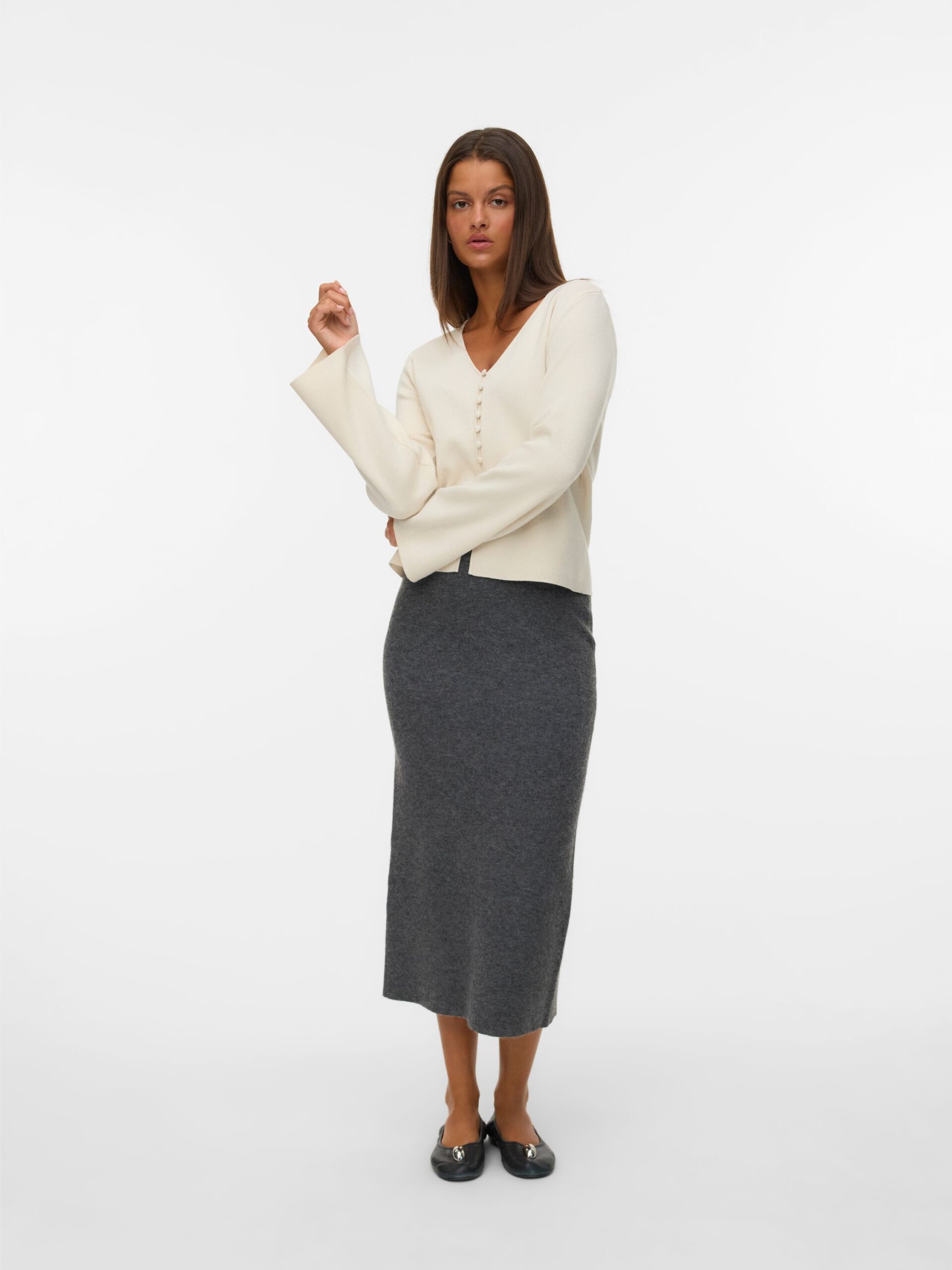 Du suchst nach einem gestrickten Rock? Dann ist dieser Rock genau das Richtige für dich. Er wird dein neuer Favorit an kälteren Tagen sein, wenn du warm, stylish und feminin sein möchtest. Kombiniere ihn mit Stiefeln für einen unkomplizierten und modernen Look.