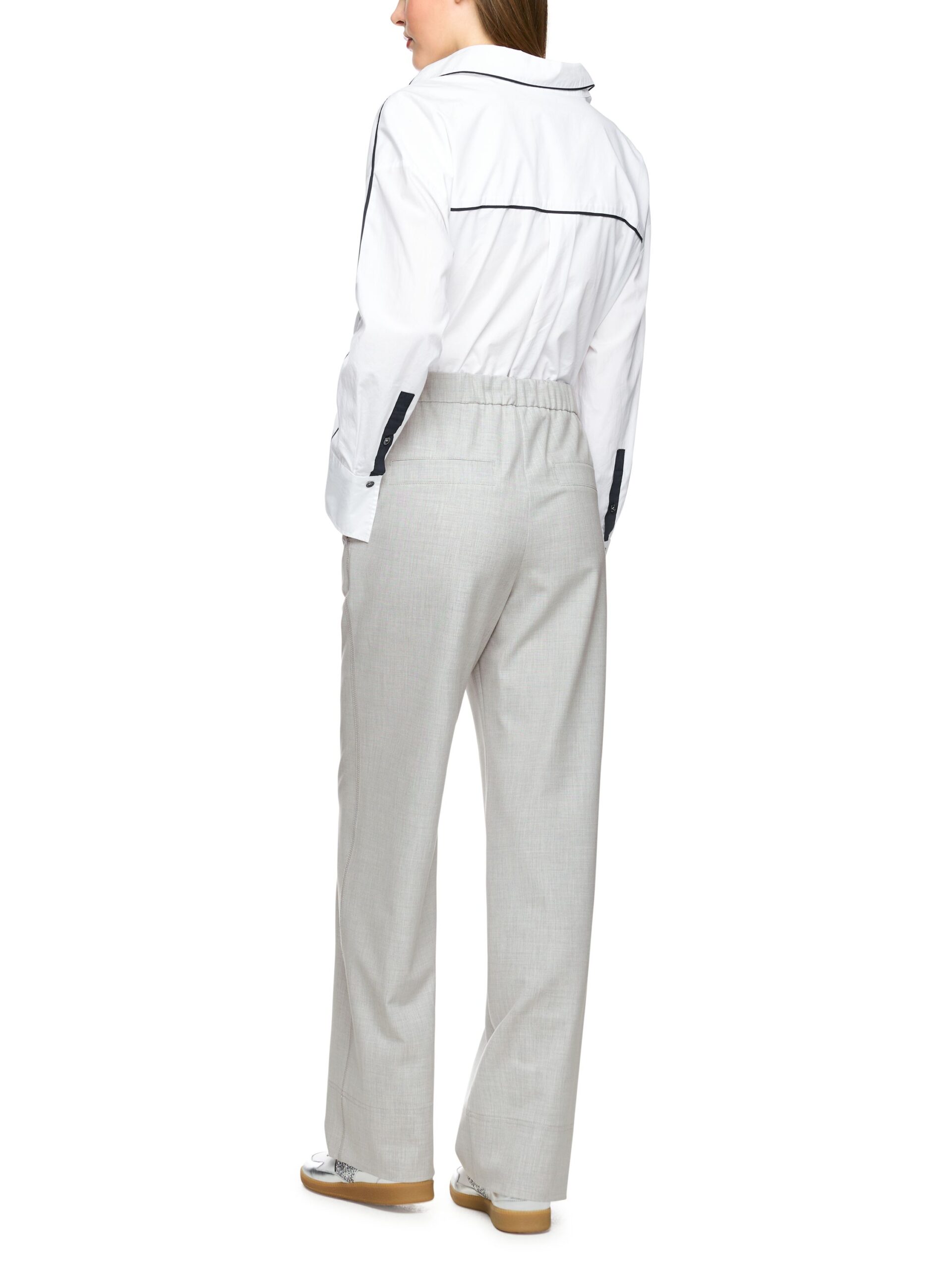 Die weite Hose WASHINGTON ist am Bund mit einem Gummiband inklusive Kordel gefertigt für eine perfekte Passform. Der Materialmix mit Elasthananteil verspricht besten Tragekomfort. An den Seiten sind schräg stehende Eingrifftaschen platziert. Weiter Schnitt. Reguläre Bundhöhe. Beinlänge: 32. Das Model ist 179 cm groß und trägt N3/38.
