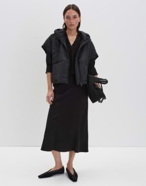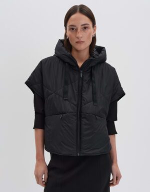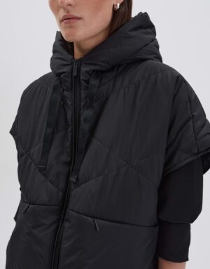 weite Passform, leicht talliert, ärmellos, Stehkragen und Kapuze, Rückenlänge ca. 61 cm bei Größe 36, Model Größe 177 cm trägt Größe S, Webware, Futter: Polyester, glatter Griff, atmungsaktiv, windresistent, wattierte Füllung, Wärmend, Nahttaschen vorne, abgerundeter Saum, Reißverschluss, Tunnelzug in der Taille