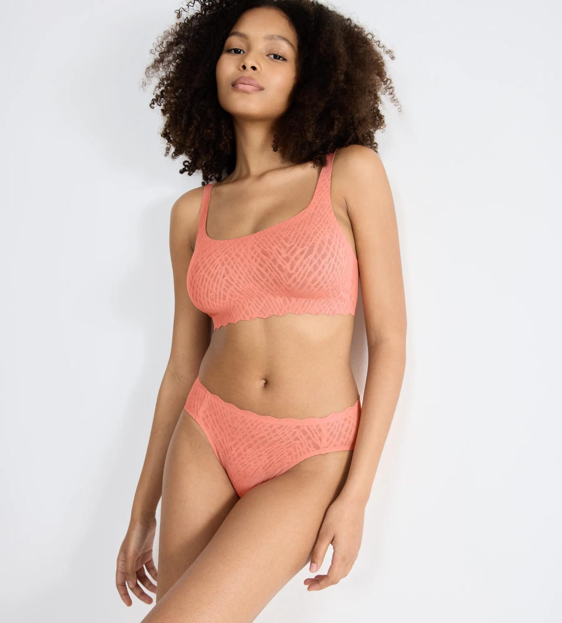 Das SLOGGI ZERO Feel Bliss Top bietet den nahtfreien, unsichtbaren Komfort in zarter 360°-Stretch-Spitze und macht jeden Tag zur puren Romantik. Herausnehmbare Pads betonen deine Silhouette, während eine Freecut-Bogenkante für eine bequeme Passform ohne Einrollen sorgt.